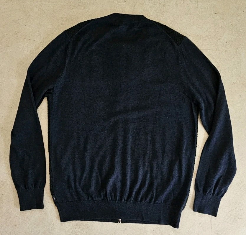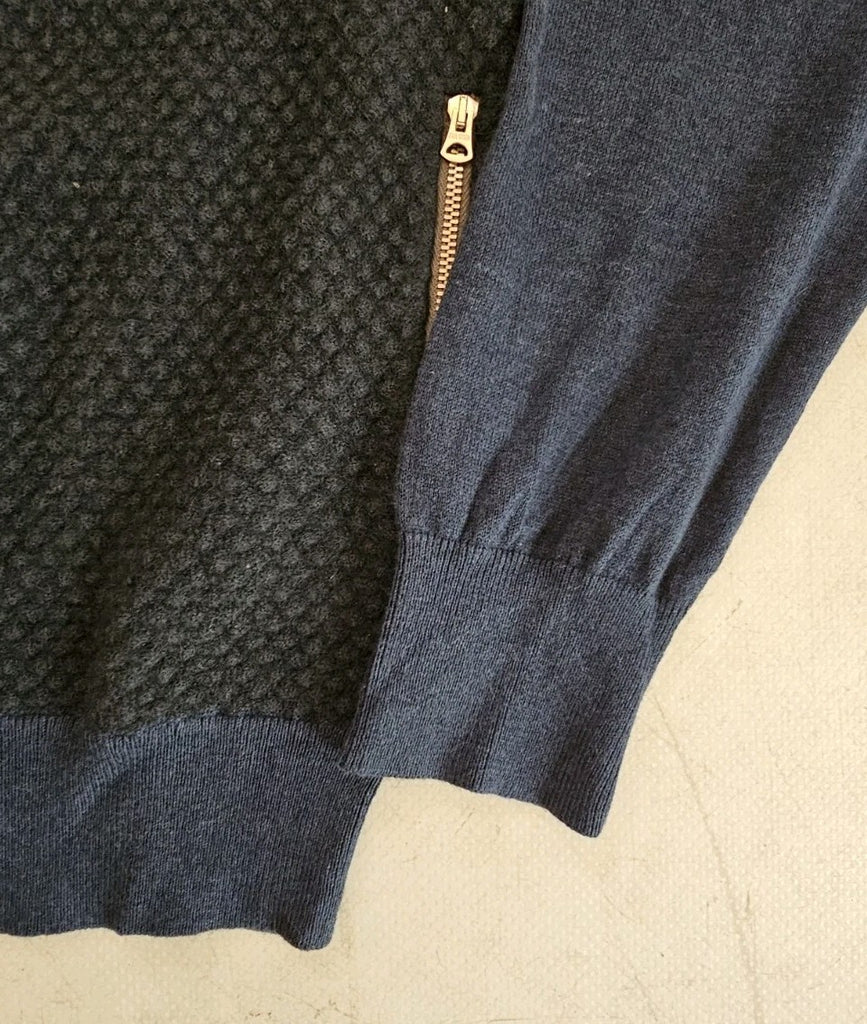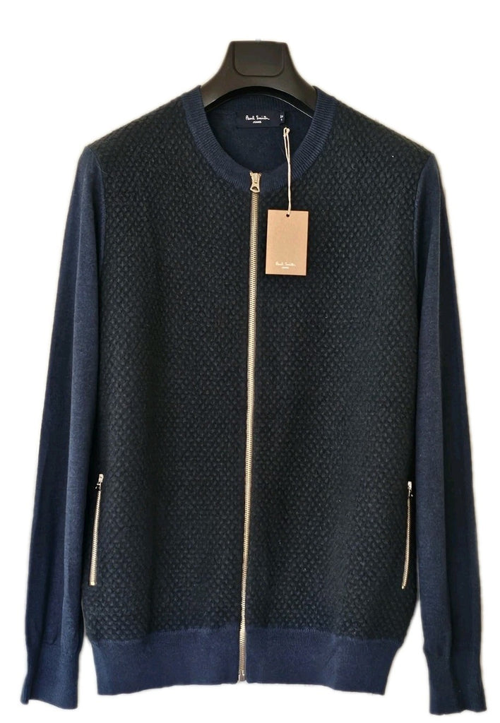 PAUL SMITH Jumper Full Zip Cardigan Pure Merino Mens M Blue Textured Weave