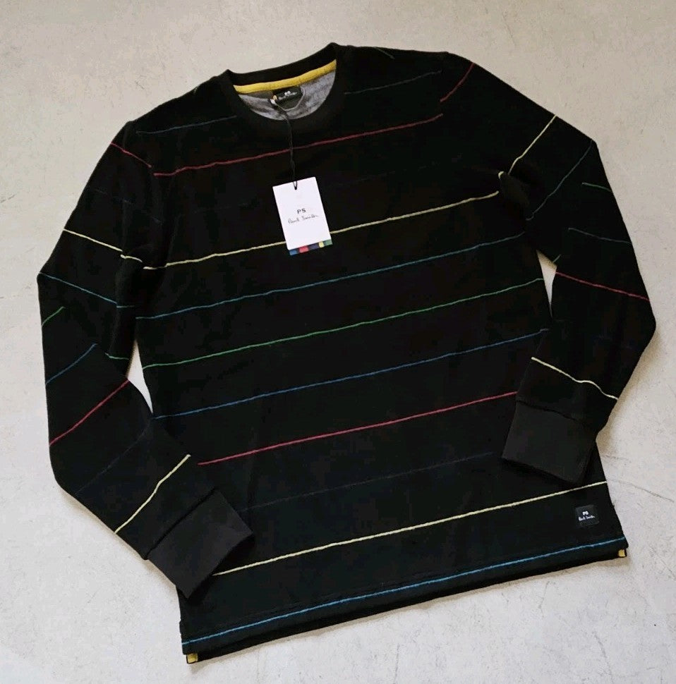 PAUL SMITH Jumper Sweater Mens M Cotton Terry Cloth Signature Stripe Waves