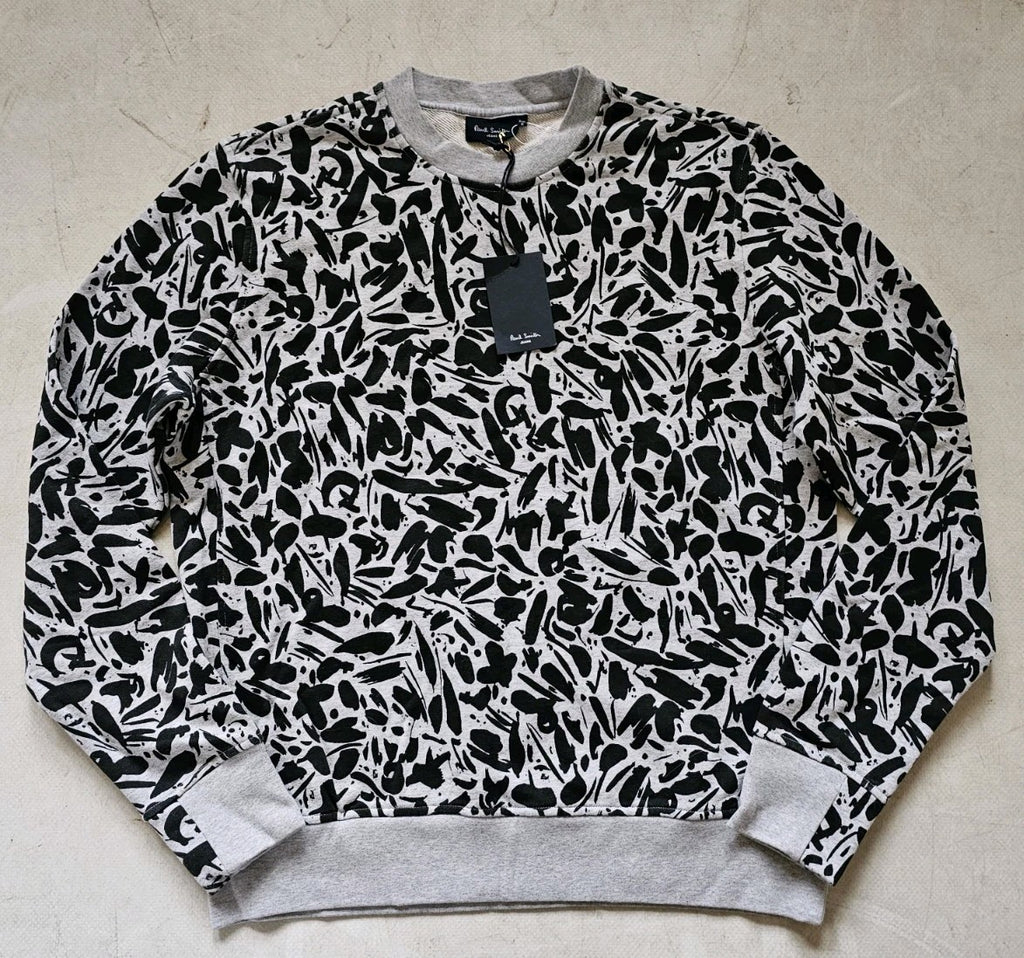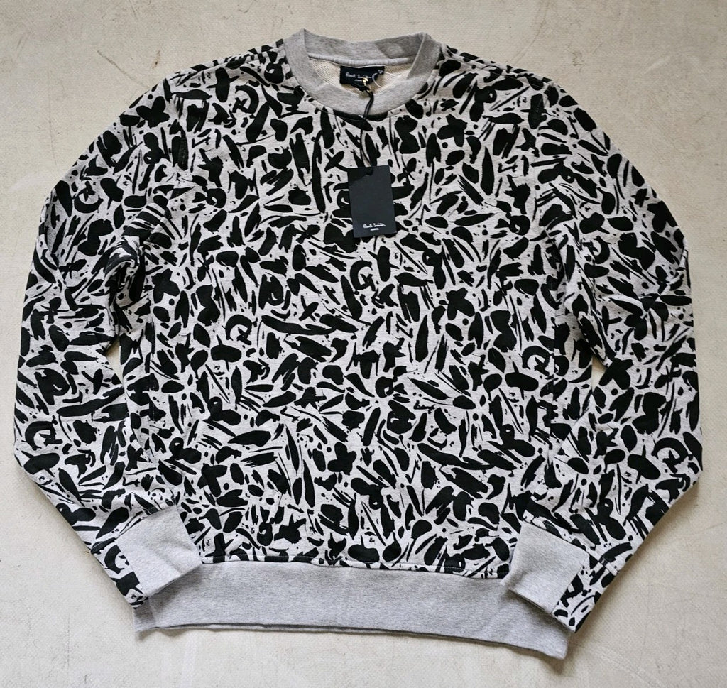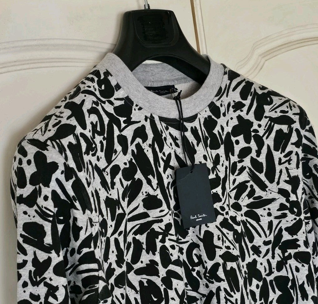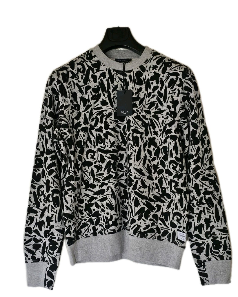 PAUL SMITH Jumper Sweatshirt Mens M Grey Black Cotton Jersey Jackson Pollock