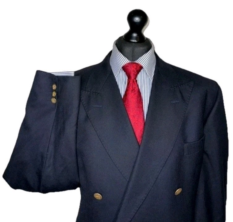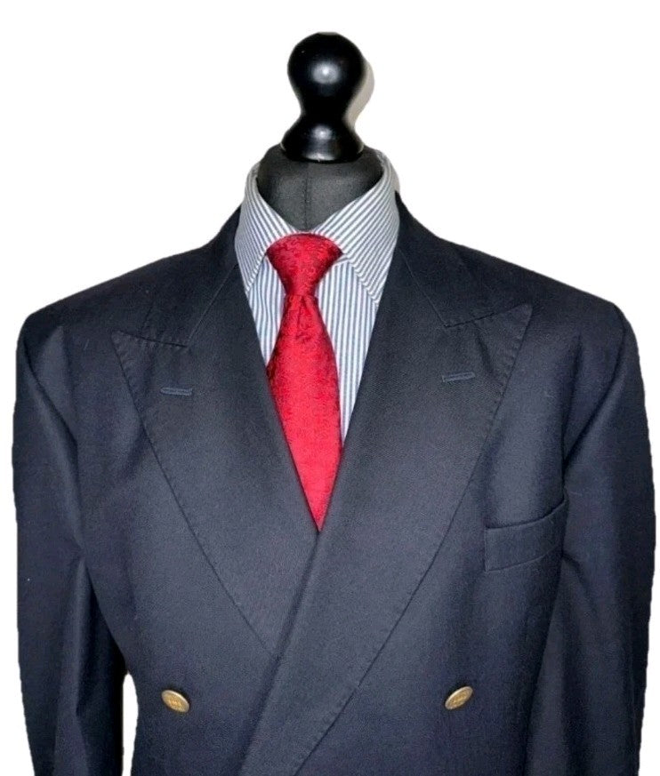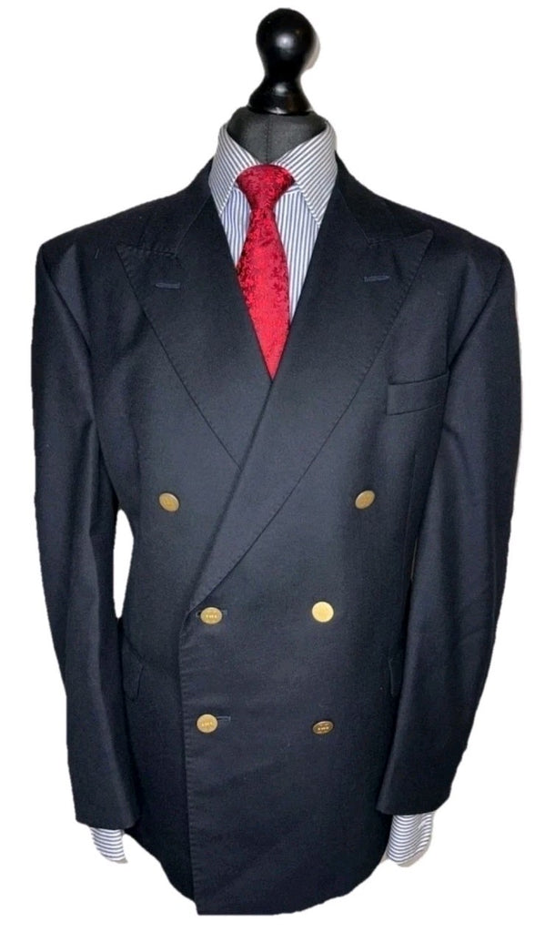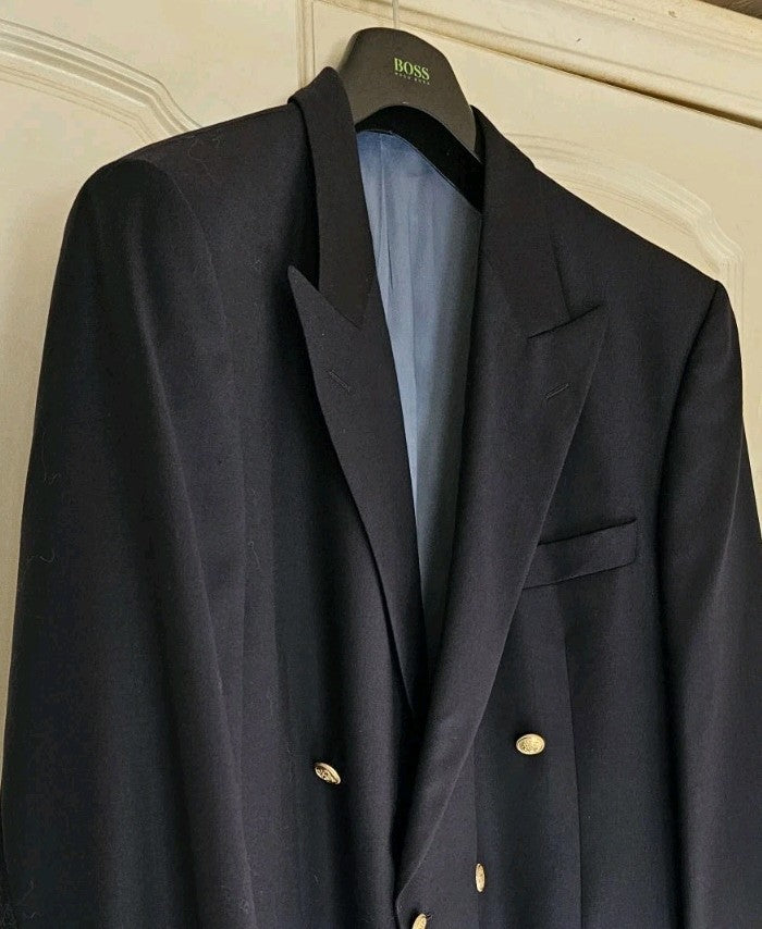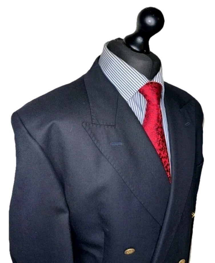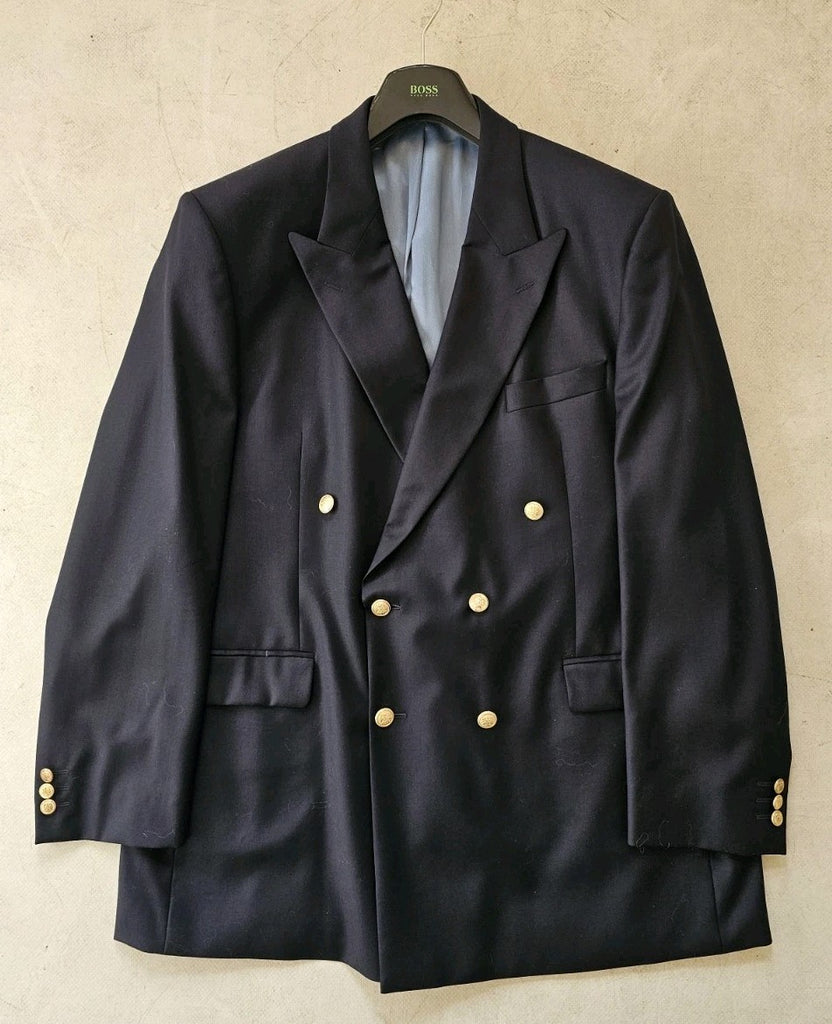 Marks Spencer Blazer Captain Jacket Dbl Brstd Mens 44 Long Tall Cut Navy Blue