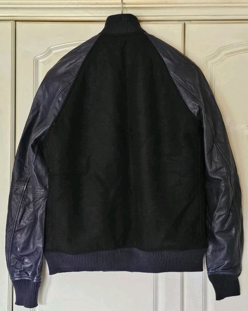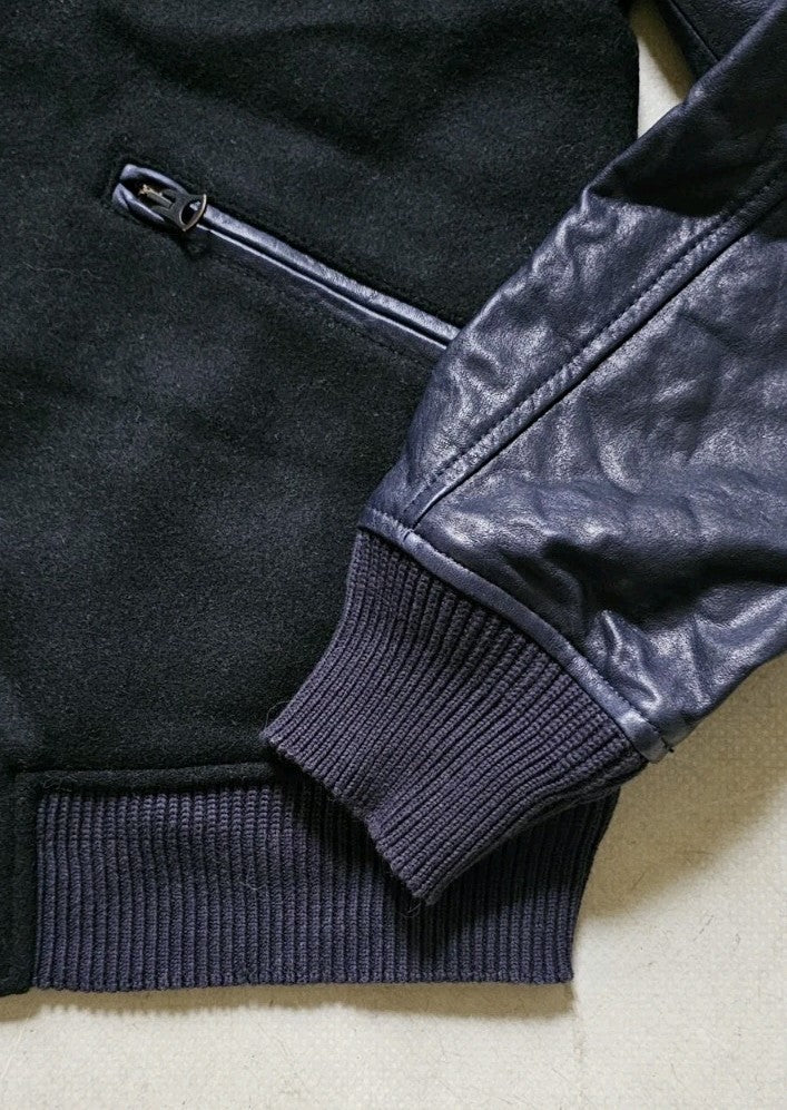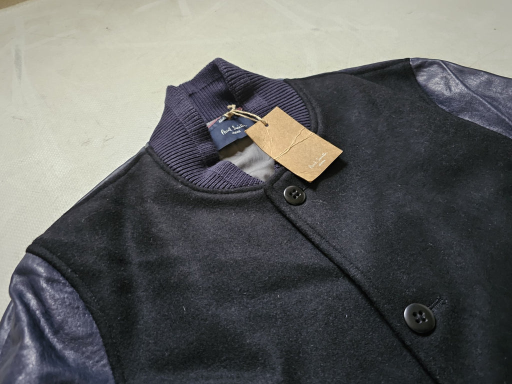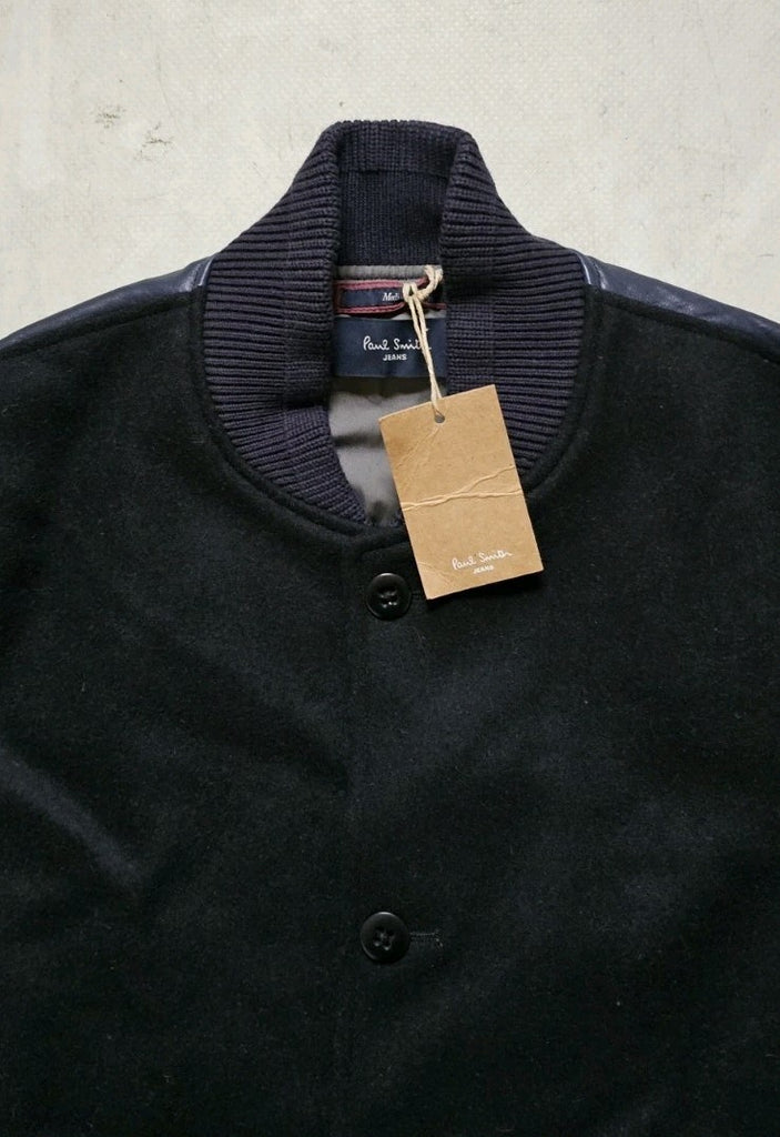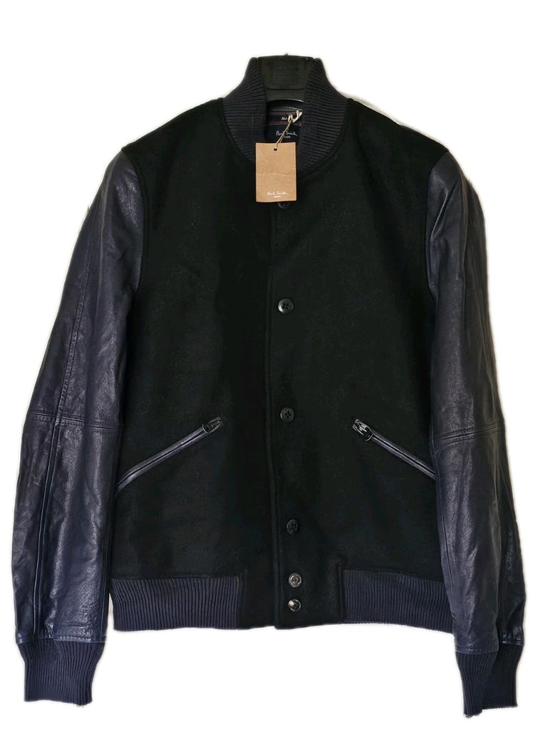 PAUL SMITH Bomber Jacket Kid Leather Wool Mens M Black Rrp £495