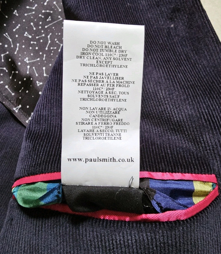 PAUL SMITH Corduroy Jacket Blazer Mens 38 Reg Fit Navy Blue