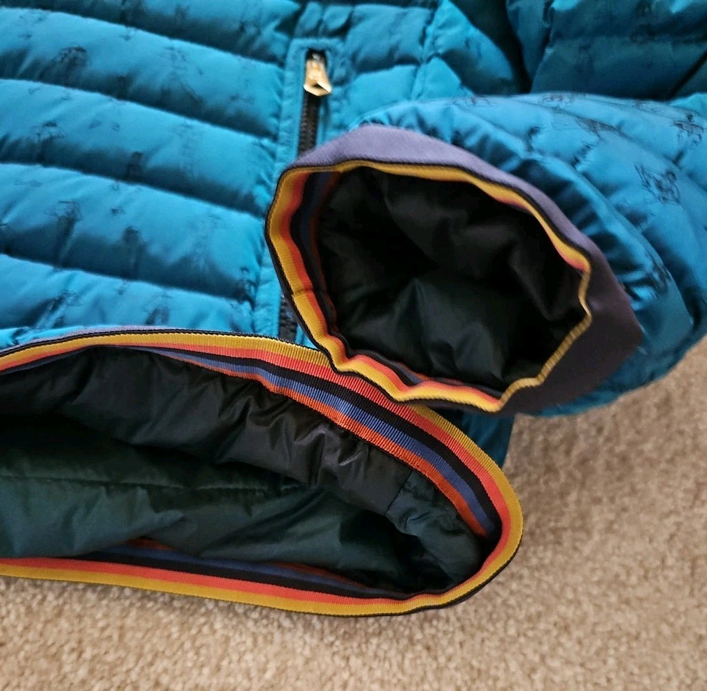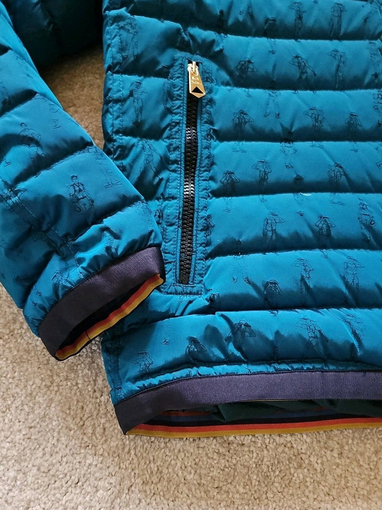 PAUL SMITH Puffer Jacket Down Filled Mens M Turquoise Artist Stipe