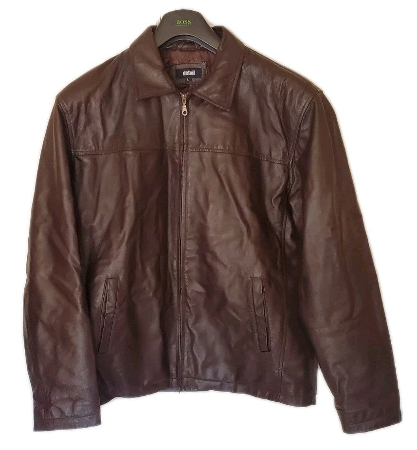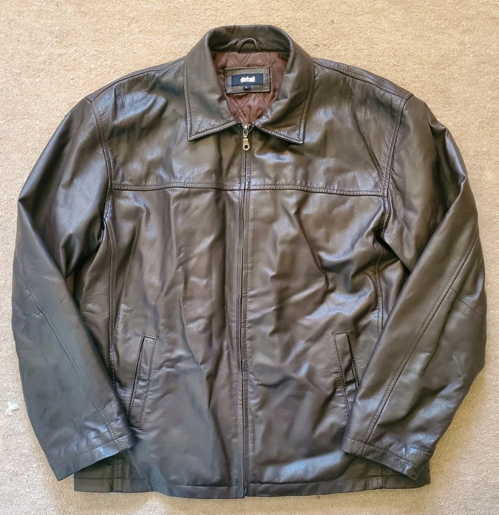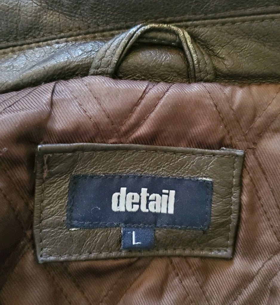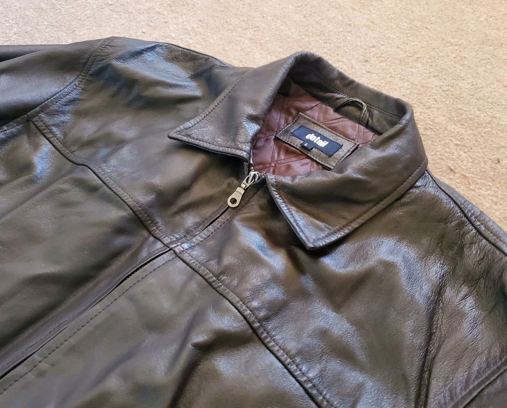 FANTASTIC OPPORTUNITY TO OWN AN AUTHENTIC LEATHER BOMBER/FLIGHT JACKET BY DETAIL, IN OUTSTANDING CONDITION - I HONESTLY DON'T THINK THAT THIS HAS BEEN WORN ON MORE THAN A HANDFUL OF OCCASIONS! THE BEAUTIFULLY SUBTLE LEATHER JACKET COMES IN A DARK MAHOGANY BROWN. THIS ITEM IS VINTAGE FROM THE 90s SO GRAB A BARGAIN!