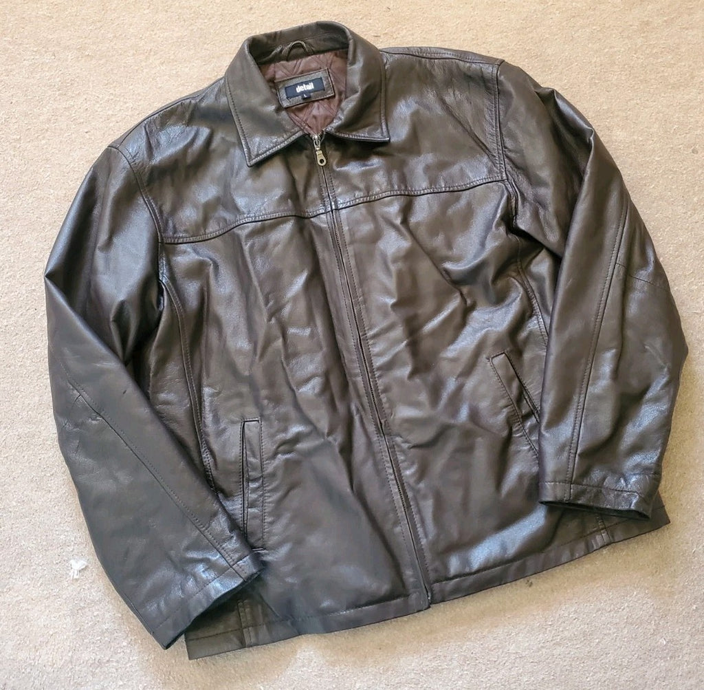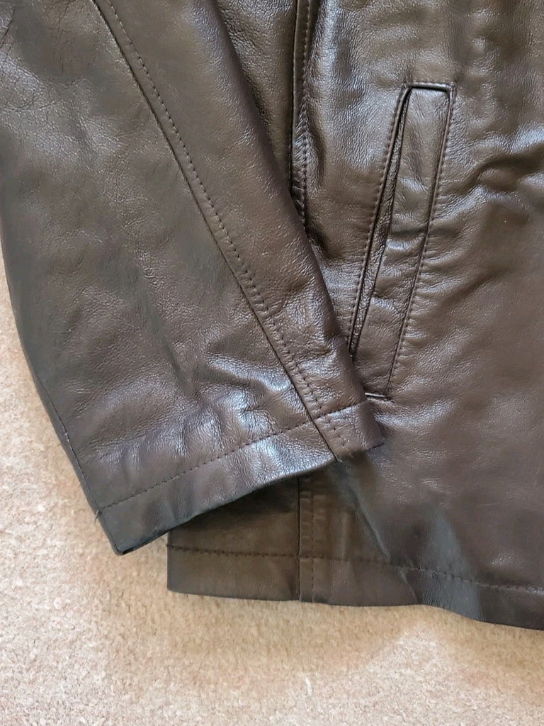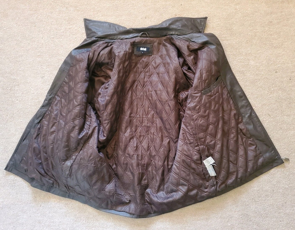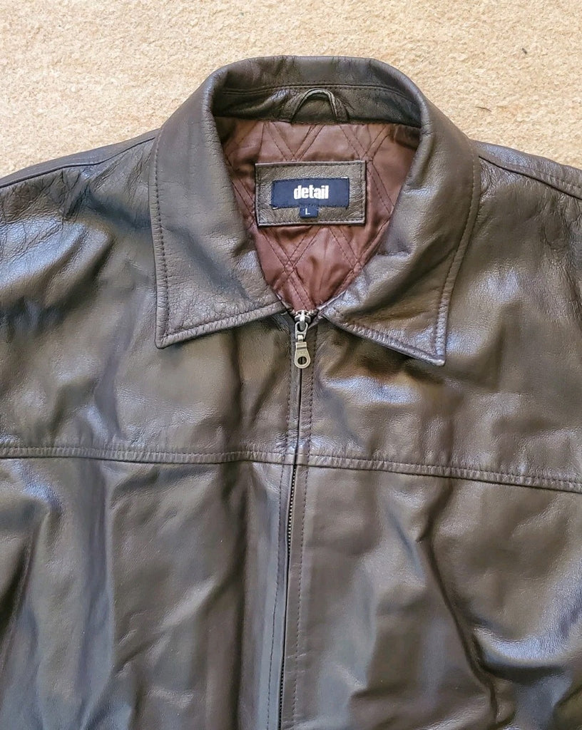 FANTASTIC OPPORTUNITY TO OWN AN AUTHENTIC LEATHER BOMBER/FLIGHT JACKET BY DETAIL, IN OUTSTANDING CONDITION - I HONESTLY DON'T THINK THAT THIS HAS BEEN WORN ON MORE THAN A HANDFUL OF OCCASIONS! THE BEAUTIFULLY SUBTLE LEATHER JACKET COMES IN A DARK MAHOGANY BROWN. THIS ITEM IS VINTAGE FROM THE 90s SO GRAB A BARGAIN!