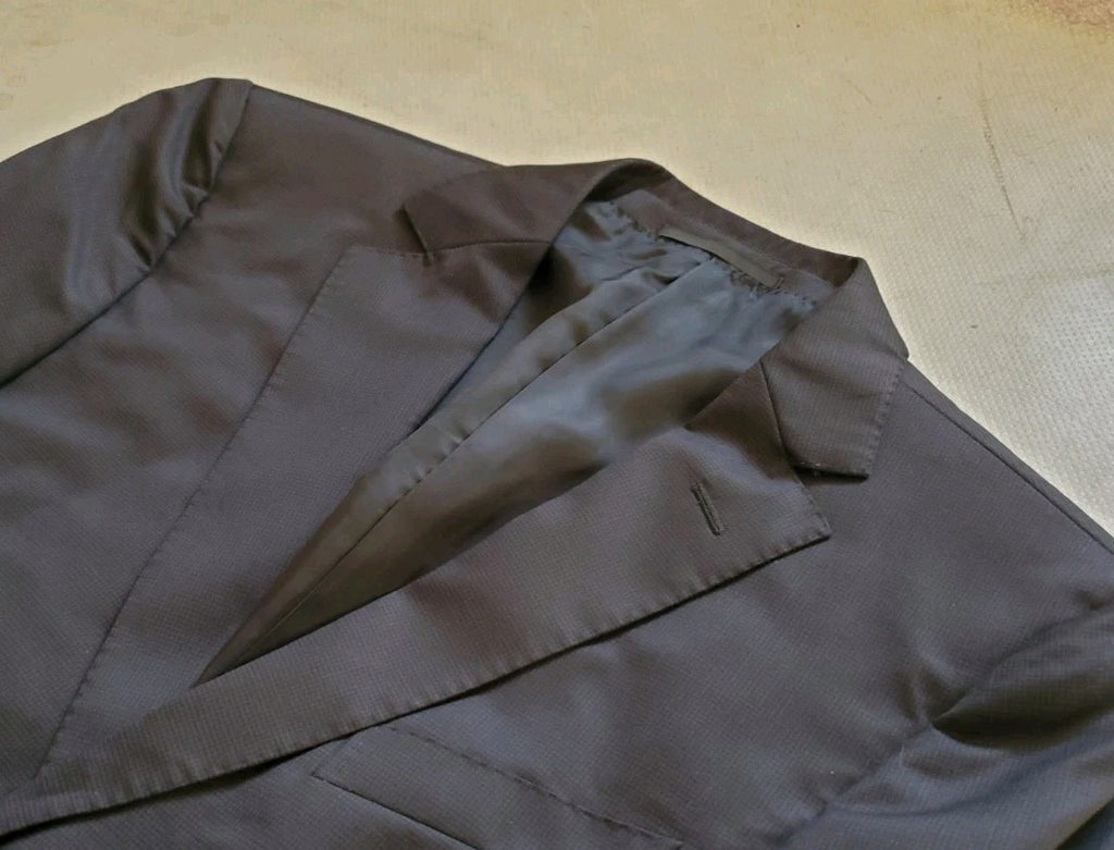 THE SUIT IN THE PHOTOS IS THE ONE THAT YOU'LL RECEIVE. AS YOU CAN SEE IT COMES IN BLACK BUT WHEN YOU LOOK CLOSE UP YOU'LL NOTICE THERE IS A VERY FINE CHECK DETAIL WITHIN THE WEAVE - IT LOOKS STUNNING!