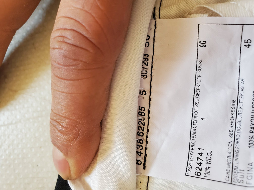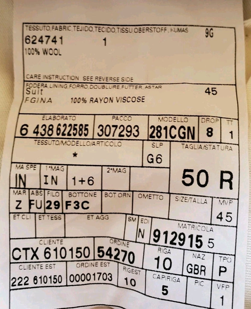 THE SUIT LABEL STATES IT'S A 50R (EU SIZE) BUT AS YOU PROBABLY KNOW THE SIZING VARIES MASSIVELY DEPENDING ON THE CUT AND STYLE SO I ALWAYS MEASURE SUITS UP MYSELF TO GIVE OUR CLIENTS EXACT AND TRUE SIZING. PLEASE COMPARE THE MEASUREMENTS BELOW WITH YOUR OWN SUIT TO ENSURE A GOOD FIT - WE ACCEPT ALL RETURNS BUT IT'S A LOT EASIER TO GET IT RIGHT FIRST TIME!