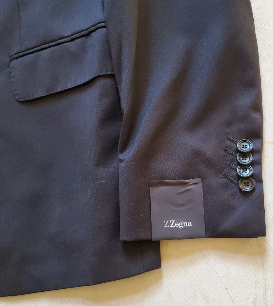 Z Zegna Suit Drop 8 Jacket Uk 40 Trs 34 Tailored Fit Black Fine Check Pure Wool