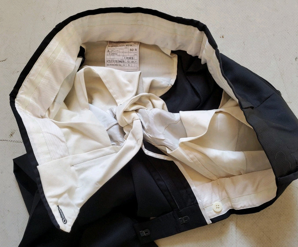 AS WITH MOST HIGH END DESIGNER SUITS THE TROUSERS ARE UNTAILORED. YOU'LL NEED TO GET THEM HEMMED AND SHORTENED TO YOUR EXACT LENGTH.