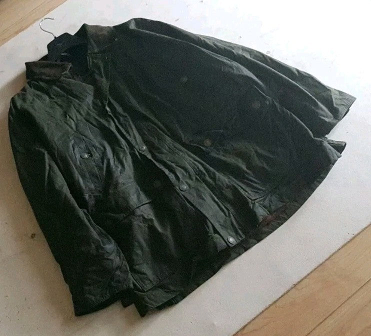 RARE OPPORTUNITY TO OWN A VINTAGE GENTS WAX/OIL COAT HANDMADE IN ENGLAND. I HAVE BEEN VERY FORTUNATE TO AQUIRE 300 OF THESE IN VARIOUS COLOURS, SIZES, LENGTHS AND STYLES. THESE ARE OUTSTANDING QUALITY PIECES - FAR MORE ROBUST THAN THE TRENDY MODERN EQUIVALENTS AND WERE DESIGNED WITH THE OUTDOORSMAN IN MIND - THIS IS A SERIOUS WORKING JACKET. I'VE TRIED TO FIND COMPARABLE ITEMS WHEN PRICING THEM UP BUT THE CLOSEST I'VE LOCATED ARE IN GERMANY AND COST BETWEEN £87 - £200!