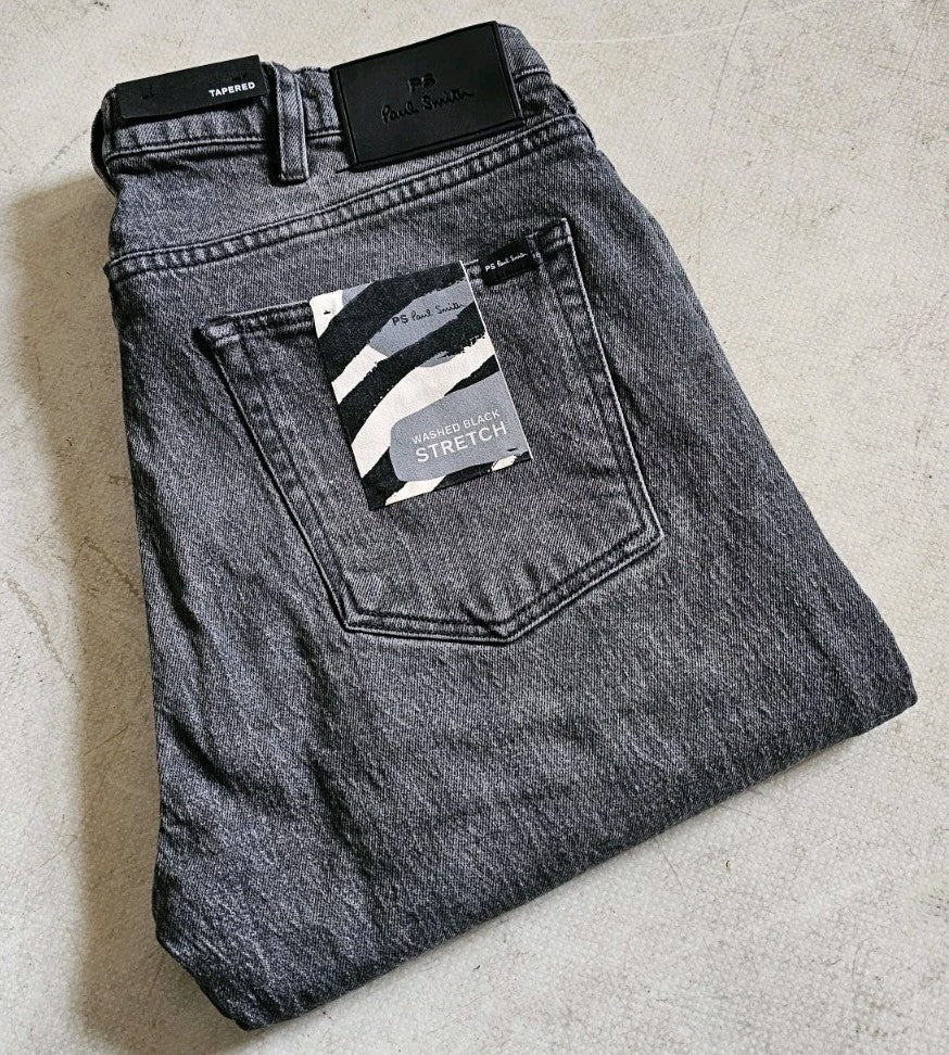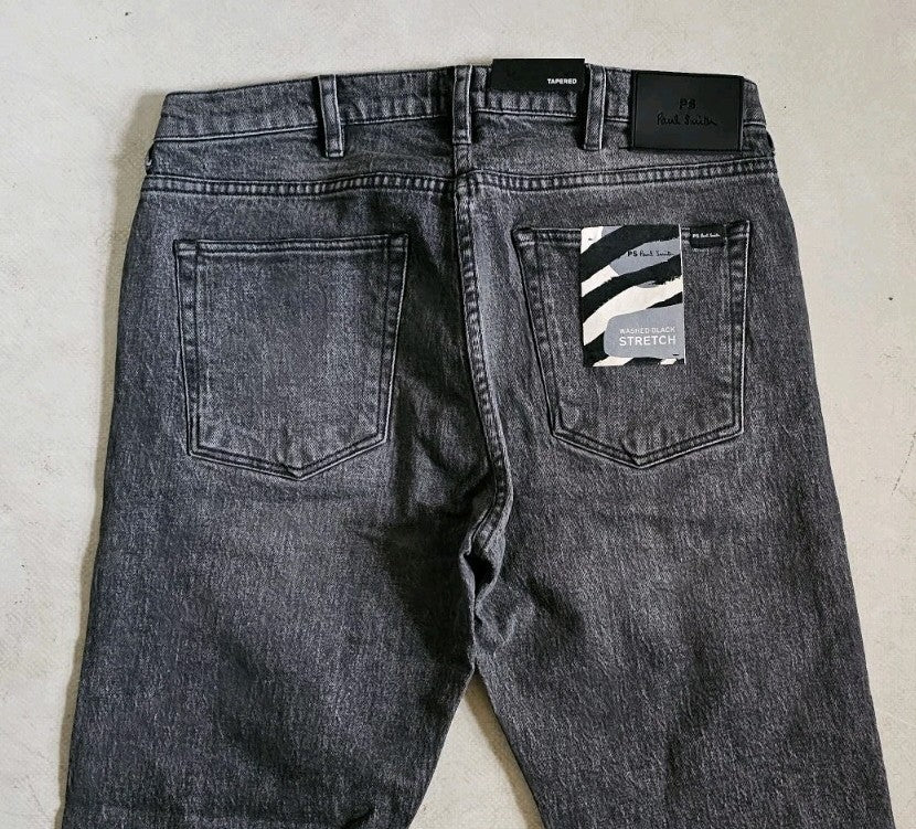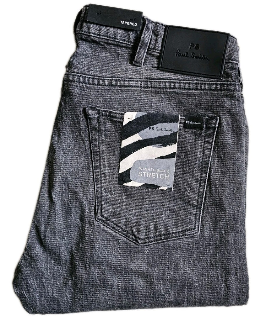 PAUL SMITH Jeans Mens W 32 L 32 Tapered Fit Washed Black Stretch Denim Rrp £165