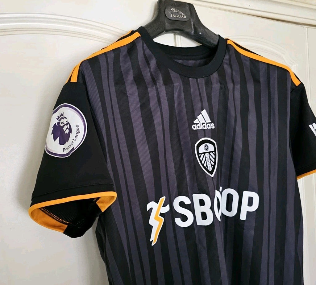Leeds United Football Shirt Jersey Men L Adidas 2022 2023 Third Kit Black Orange