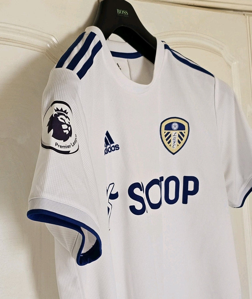 Leeds United Football Shirt Jersey Mens L Adidas 2020 2021 Home White Royal Blue