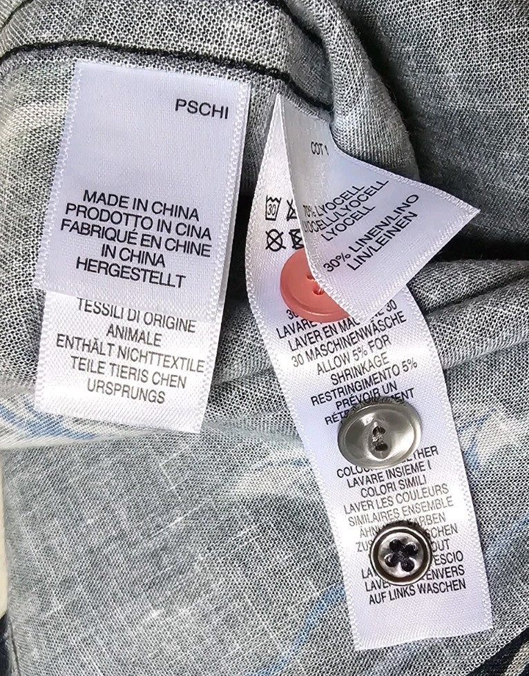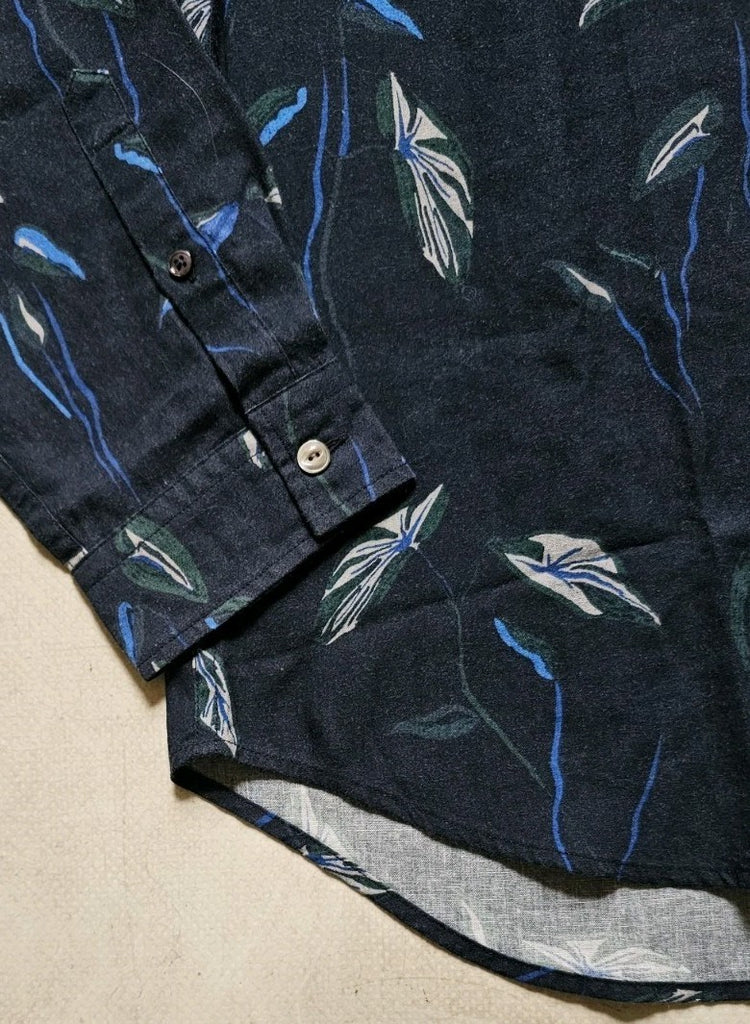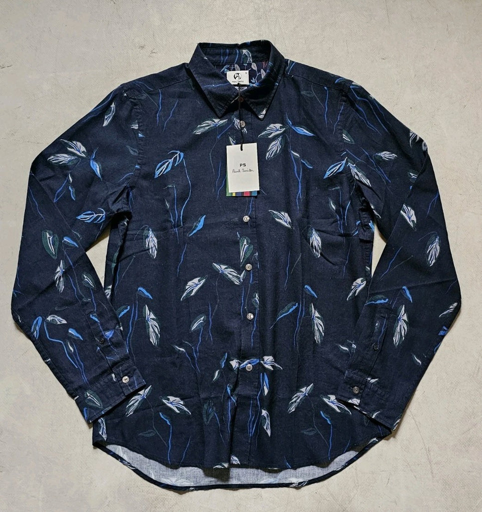 PAUL SMITH PS Shirt Men M Abstract Print Tailored Fit Blue Linen Blend