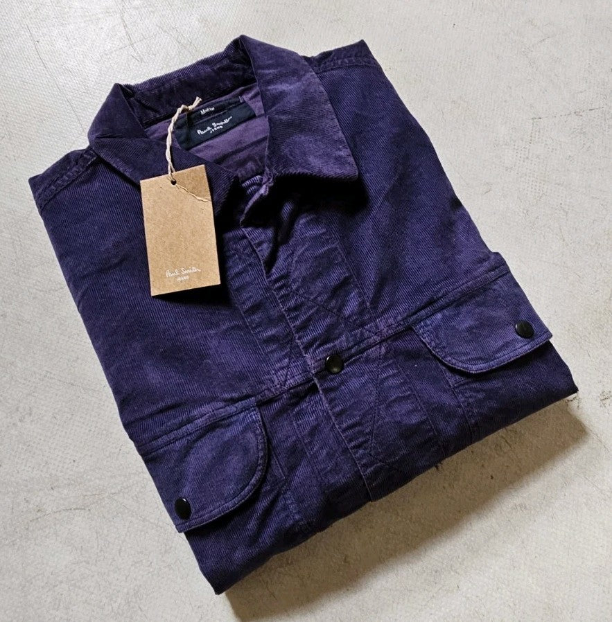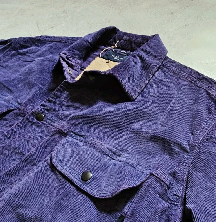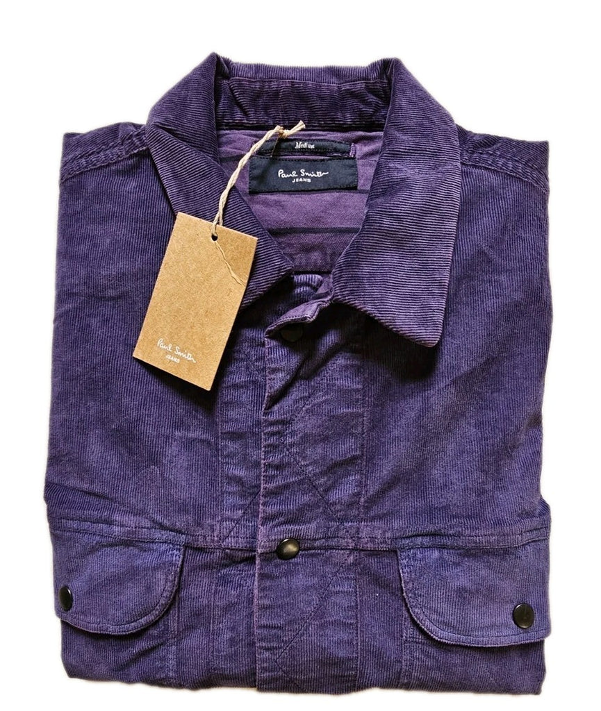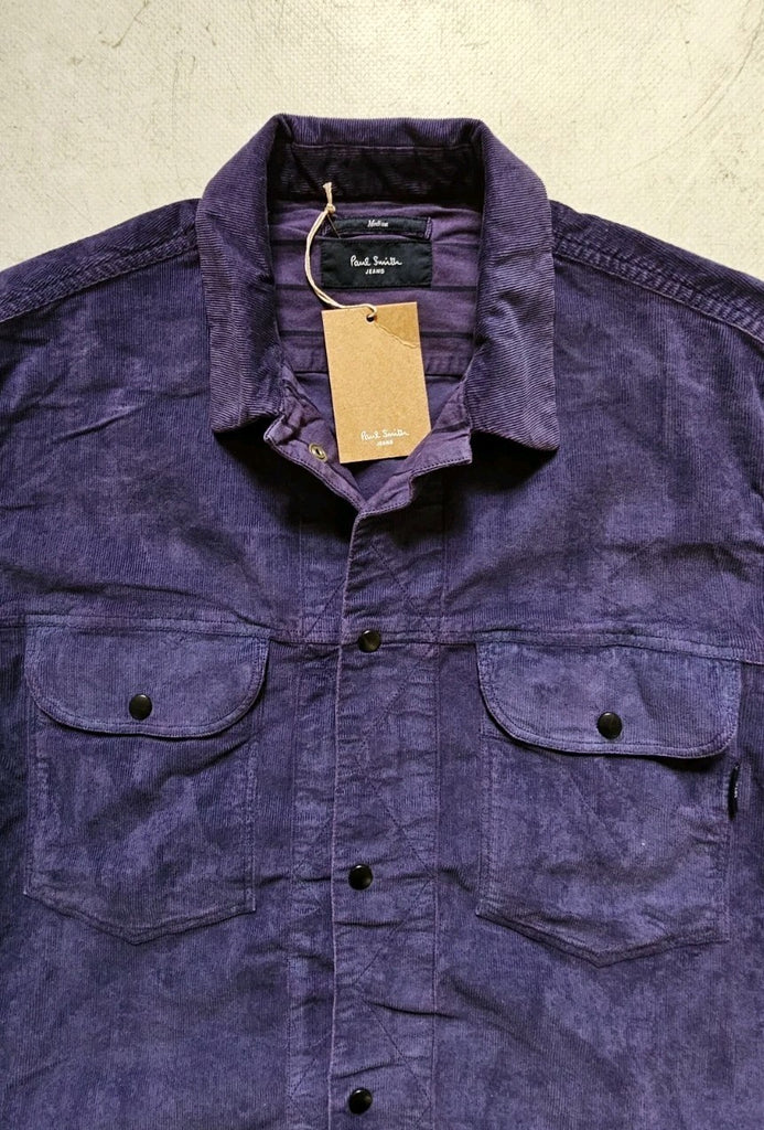 PAUL SMITH Shirt Corduroy Men M Regular Fit Purple Press Stud Fastenings