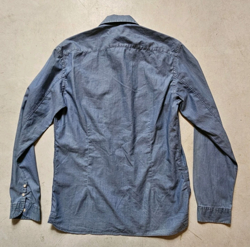 PAUL SMITH Shirt Men M Tailored Fit Blue Denim Look Cotton