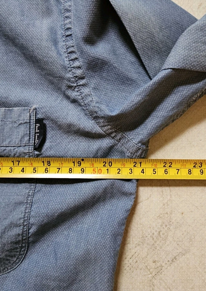 IF YOU'RE FAMILIAR WITH PAUL SMITH YOU'LL ALREADY BE AWARE THAT THEIR SIZING IS SOMEWHAT RANDOM DEPENDING ON THE CUT/STYLE OF THE PIECE. THUS, I MEASURE EACH ITEM INDIVIDUALLY TO PROVIDE AN ACCURATE SIZE AND AVOID ANY CONFUSION! PLEASE SEE PICS WHICH FORM PART OF THE DESCRIPTION. AS YOU CAN SEE THE PIT TO PIT MEASUREMENT IS ACTUALLY 21 INCHES ACROSS. PLEASE ALSO BE AWARE THAT THIS IS A TAILORED FIT SHIRT. IT'S WORTH COMPARING WITH ONE OF YOUR OWN SHIRTS TO ENSURE A PERFECT FIT - WE ACCEPT ALL RETURNS BUT IT'S A LOT EASIER TO GET IT RIGHT FIRST TIME!