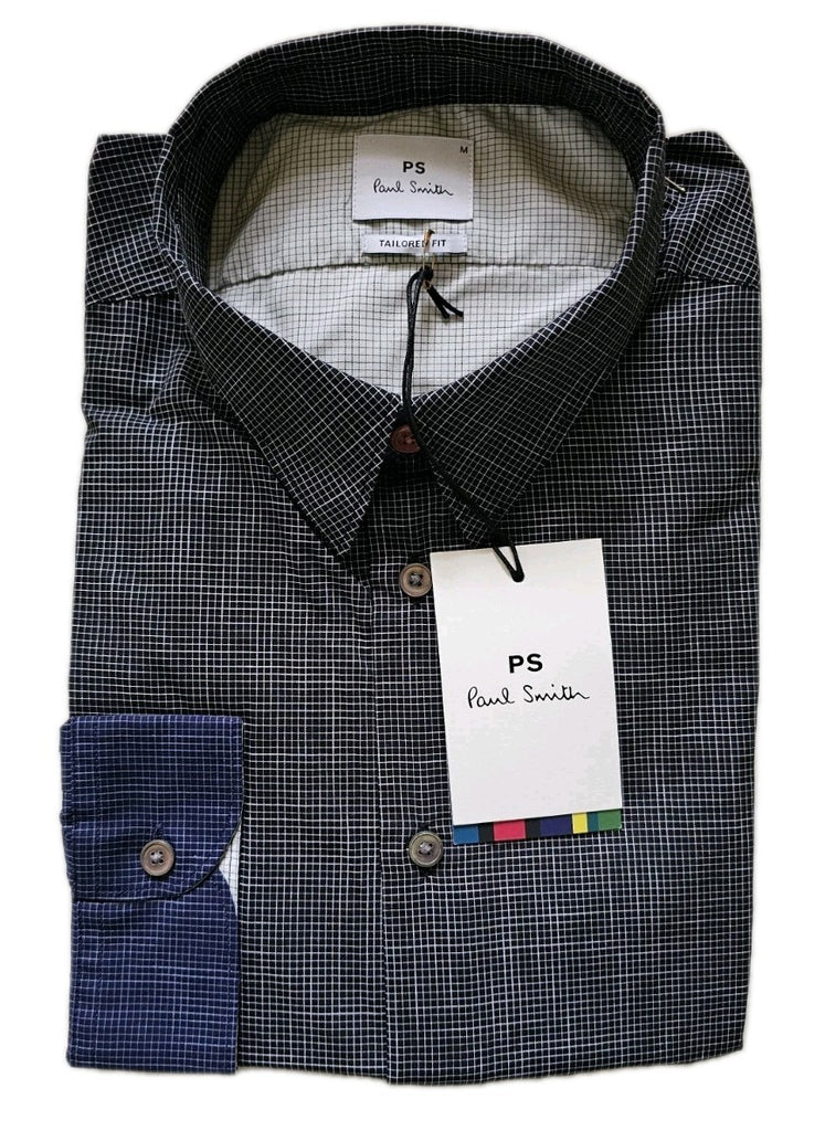 PAUL SMITH Shirt Mens M Tailored Fit Colour Block Black Blue White Check Cotton