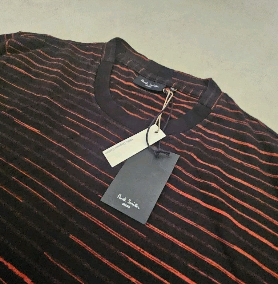 PAUL SMITH Tshirt T Shirt Mens M Regular Fit Black Orange Stripe Detail Cotton