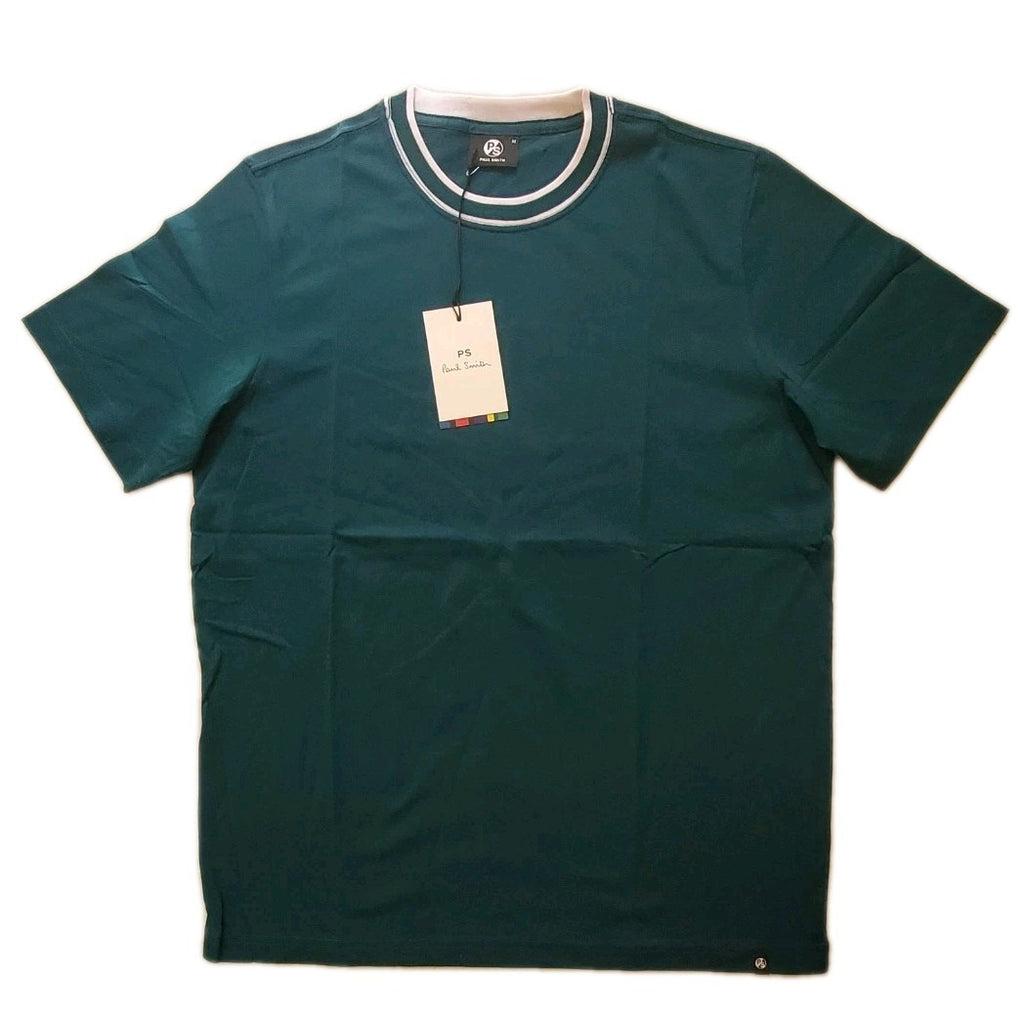 PAUL SMITH Tshirt T Shirt Mens M Regular Fit Green Organic Cotton White Trim