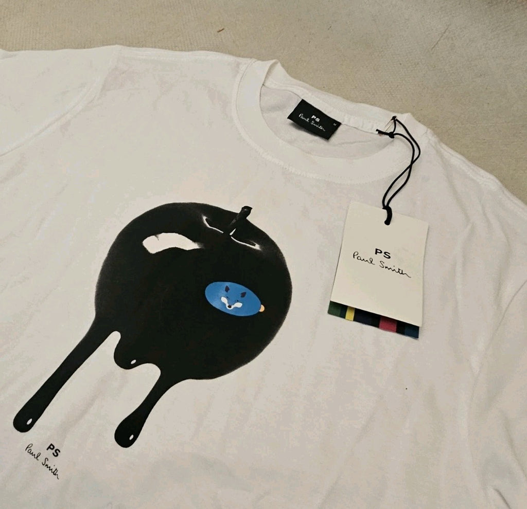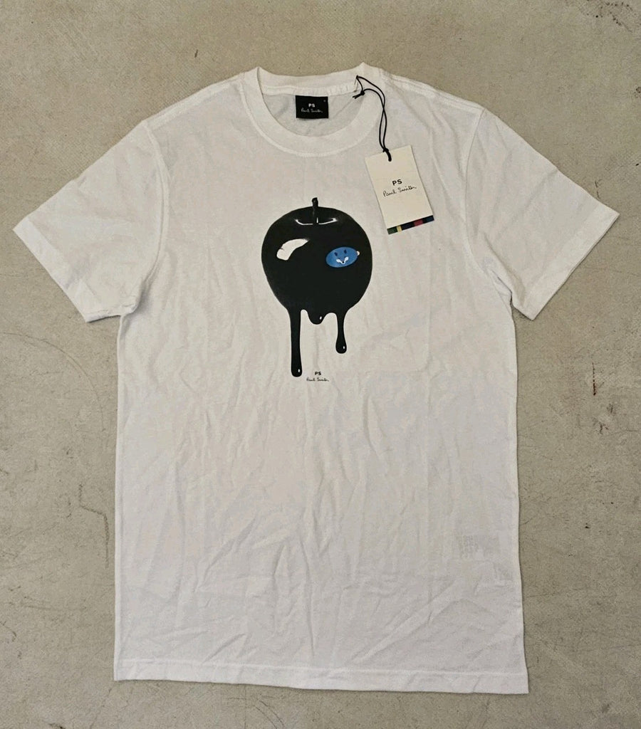 PAUL SMITH Tshirt T Shirt Mens M Slim Fit Melting Cherry White Organic Cotton