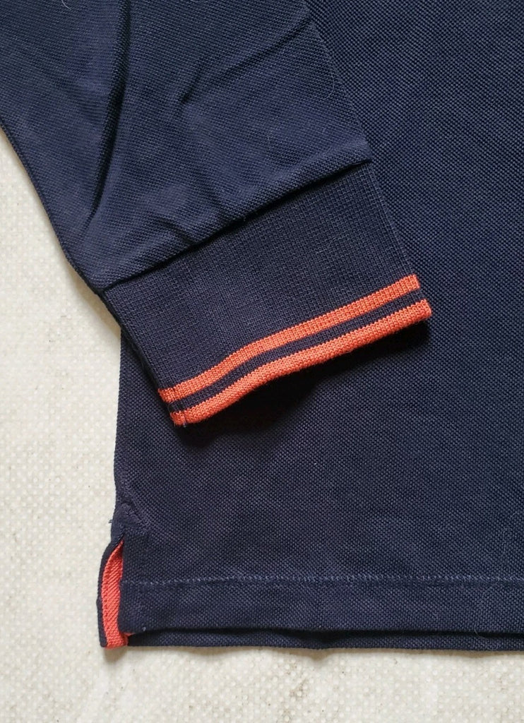 PAUL SMITH Zebra Polo Shirt Long Sleeved Mens M Dark Navy Blue Slim Orange Tip