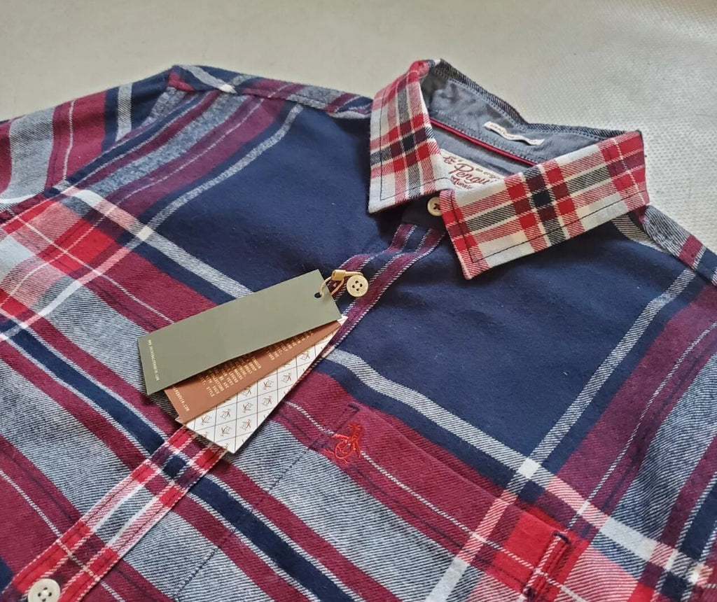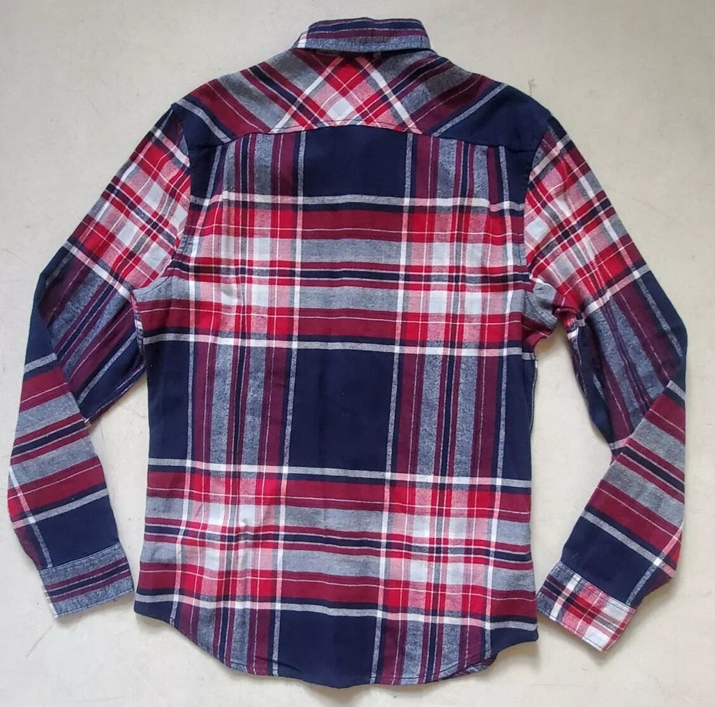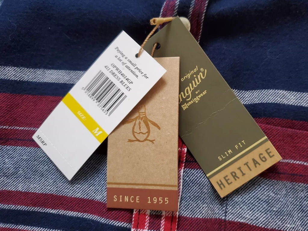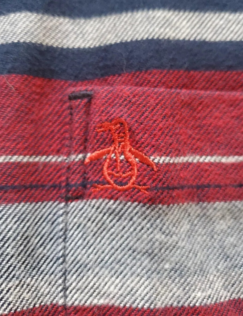 PENGUIN Shirt Mens M Heritage Slim Fit Flannel Red Blue Broad Check