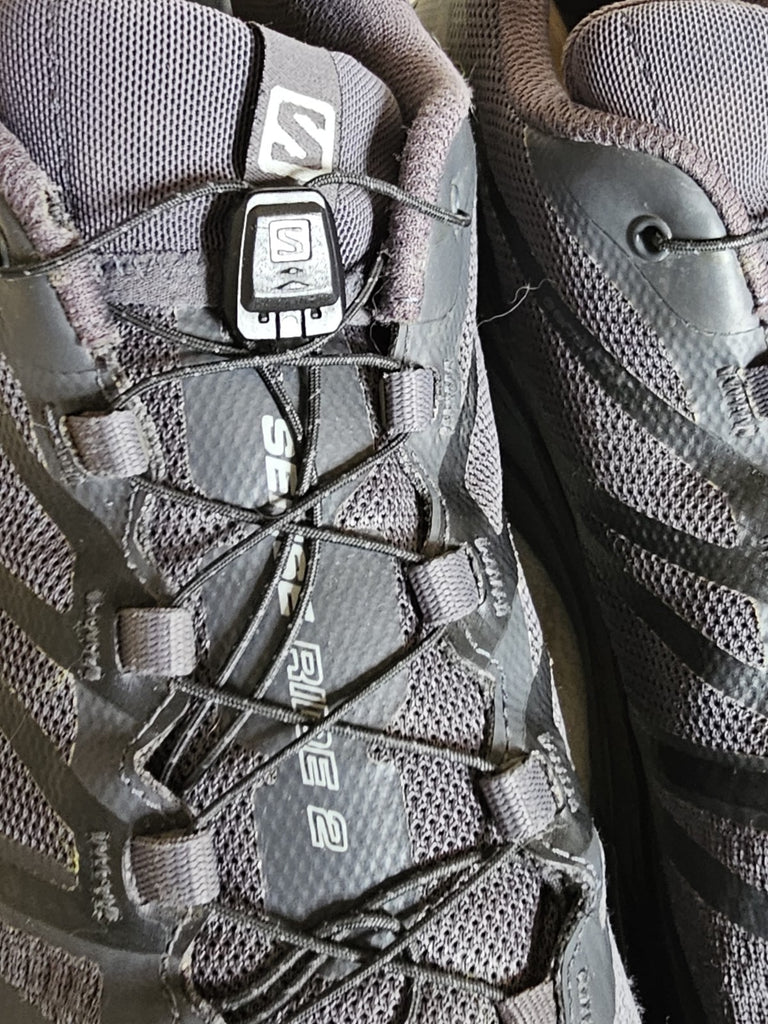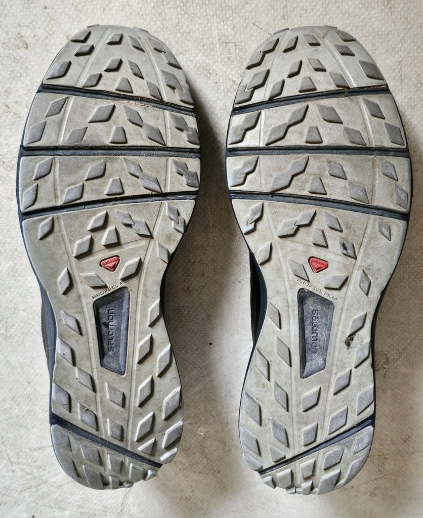 WE SELL A LOT OF PRE-WORN SHOES AND I'D GIVE THIS PAIR A 9/10. NOT PERFECT BUT VERY, VERY GOOD! THIS IS A SUPERIOR PAIR OF TRAINERS AND THE QUALITY SHINES THROUGH - THEY'RE SALOMON, SO WILL LAST FOR YEARS!