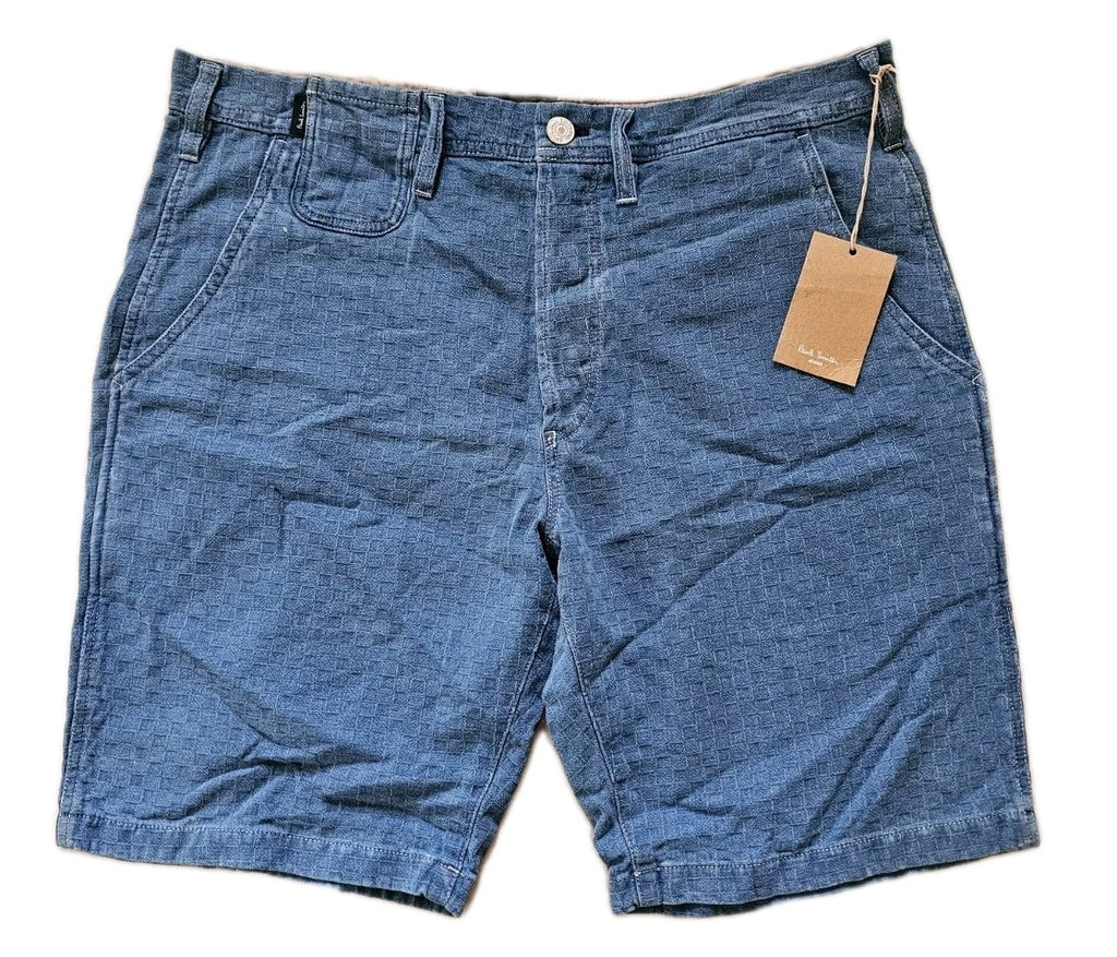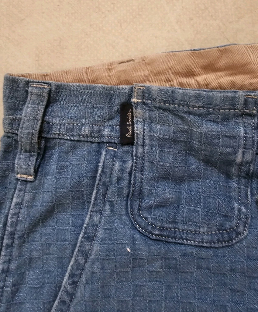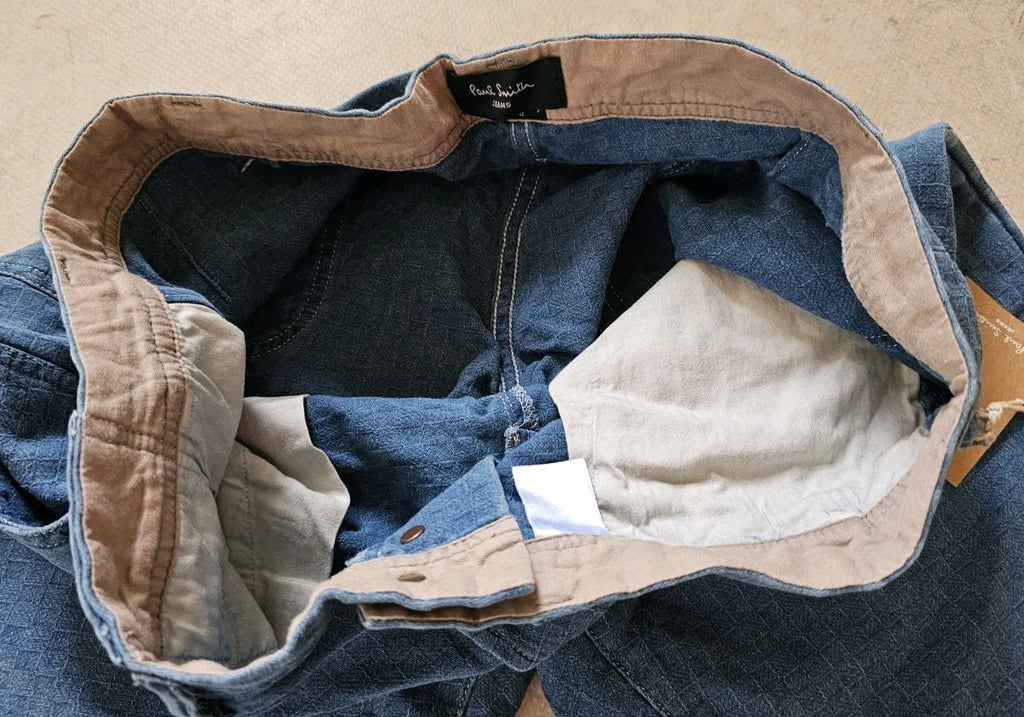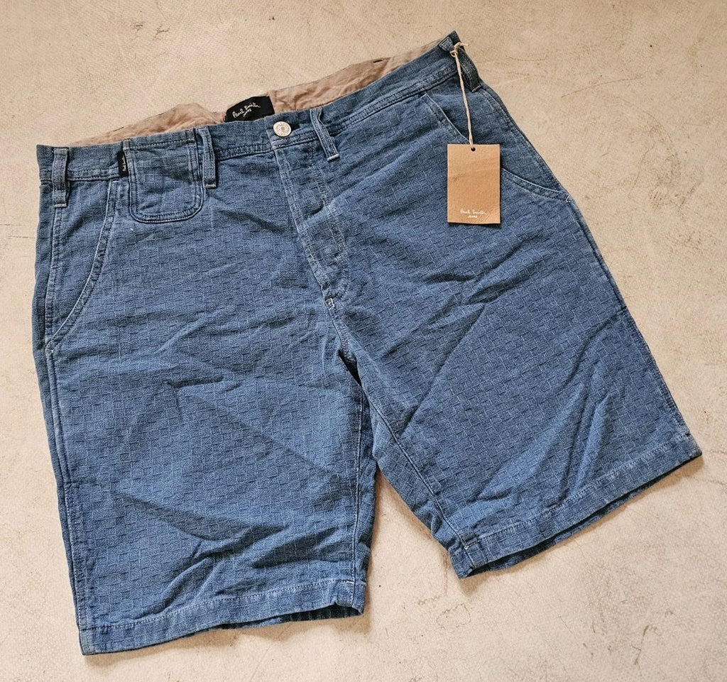 PAUL SMITH Shorts Mens 32 Blue Lightweight Check Weave Denim Chino Pure Cotton