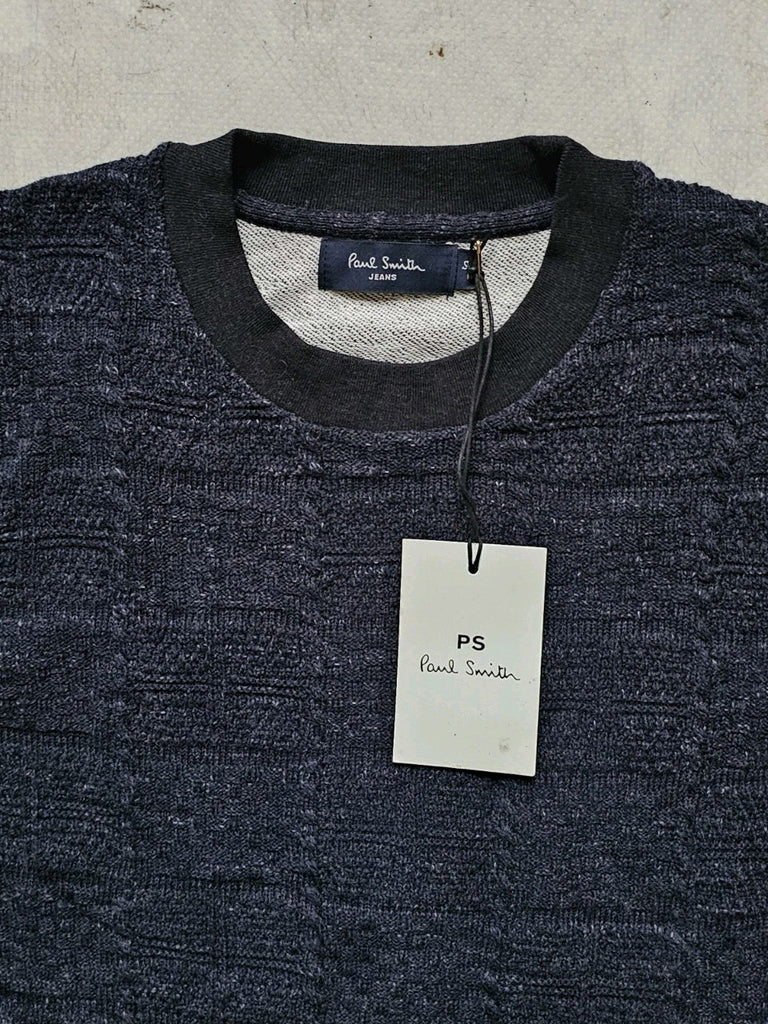 PAUL SMITH Jumper Sweatshirt Mens M Charcoal Grey Cotton Textured Knit Crew Neck