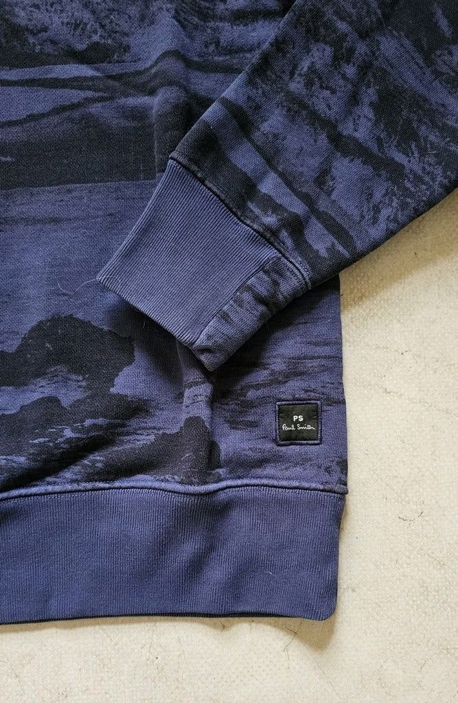 PAUL SMITH Sweatshirt Mens M Abstract Seascape Blue Organic Cotton