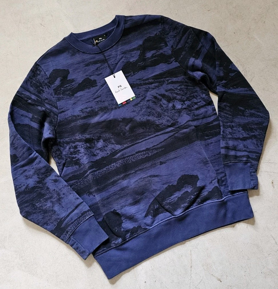 GREAT OPPORTUNITY TO OWN A BRAND NEW PAUL SMITH SWEATSHIRT IN BLUE WITH AN ABSTRACT SEASCAPE PRINT (YOU HAVE TO SQUINT). THE RRP ON THIS ITEM IS A FRANKLY RIDICULOUS £125 SO GRAB A SERIOUS BARGAIN!