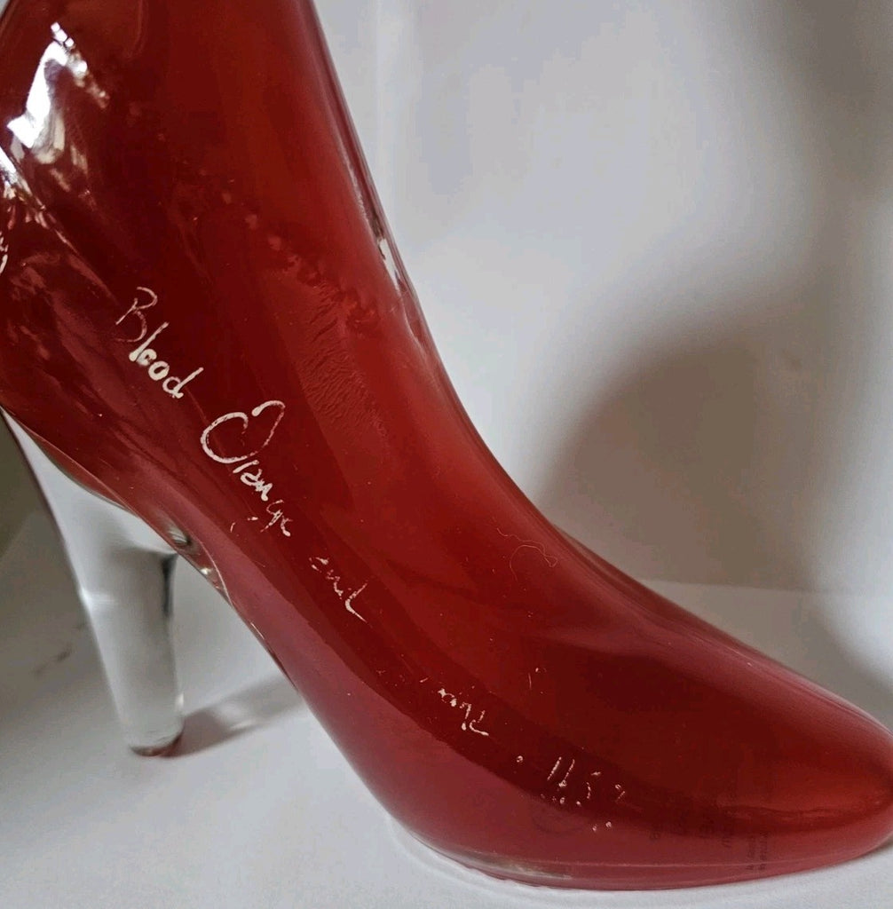 The Harvey Nichols Selfridges Stiletto Boot Bottle in Blood Orange is a stunning decorative glass/crystal collectable, perfect for perfume enthusiasts. Made in the United Kingdom, this 350ml bottle is adorned with a sleek stiletto boot design, adding a touch of elegance to any vanity or display. With its iconic Selfridges branding, this perfume bottle is a must-have for collectors looking for a unique and luxurious addition to their collection. Ideal for storing or showcasing, this bottle is a perfect blend of style and functionality.