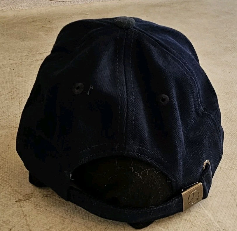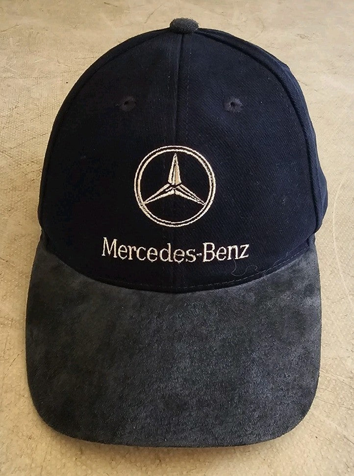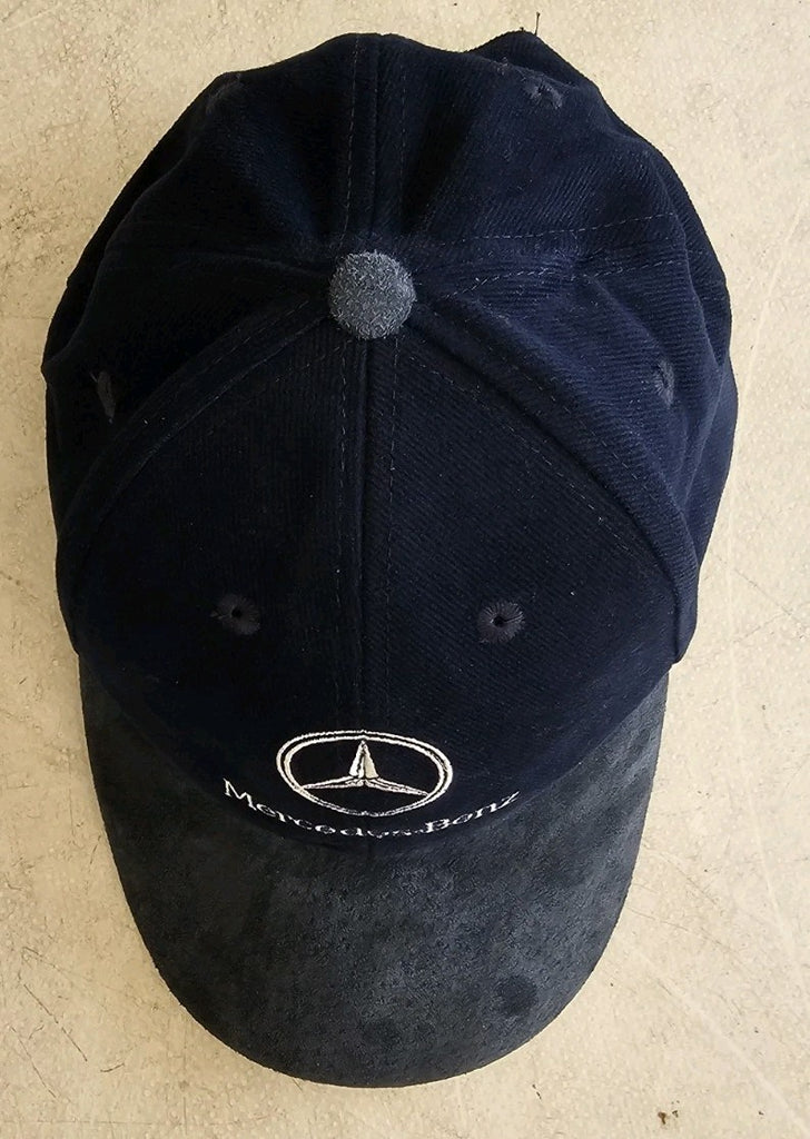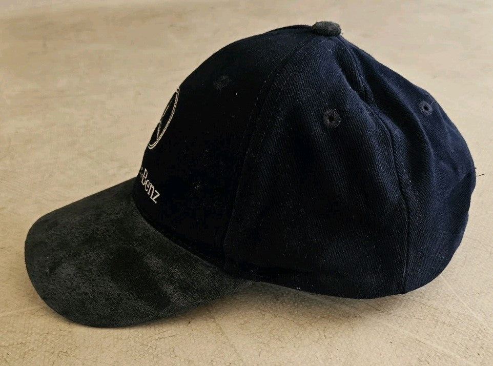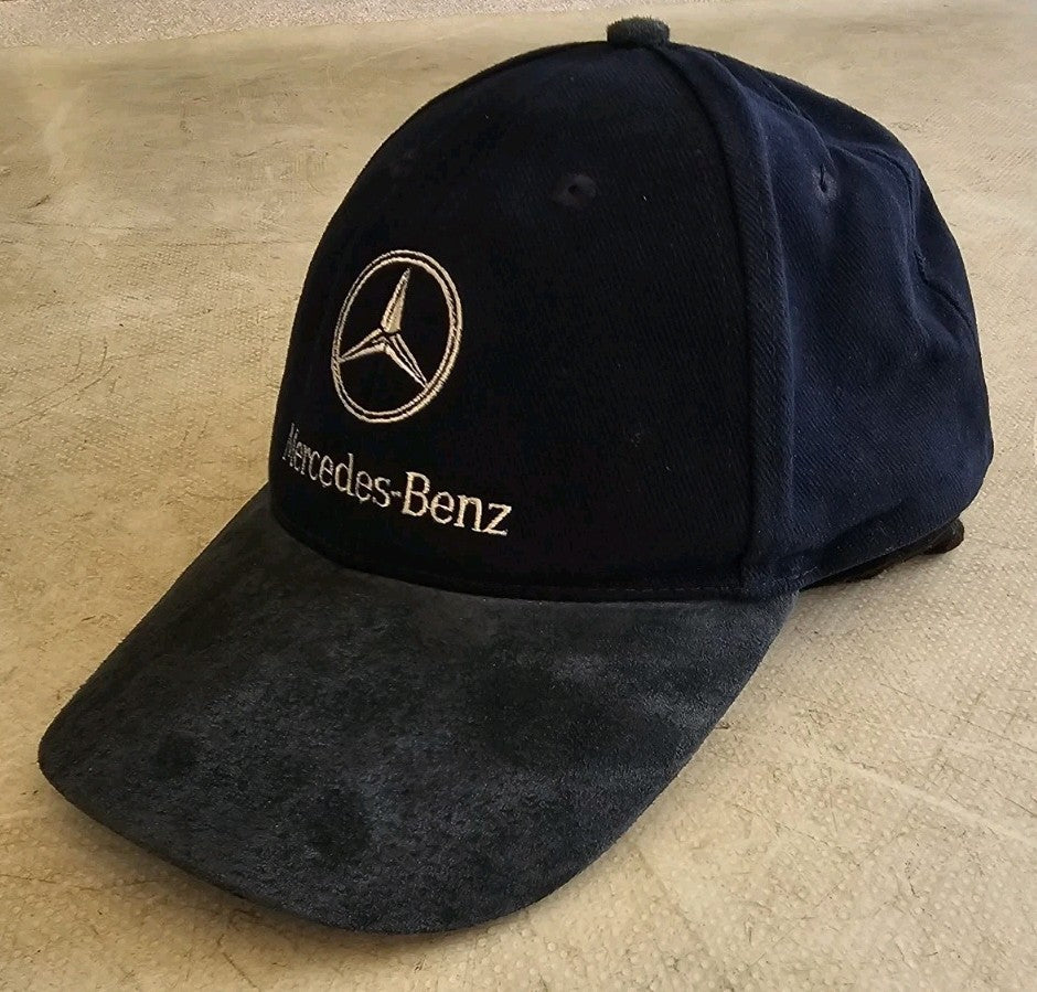 MERCEDES BENZ Baseball Cap Navy Blue Suede Peak Silver Logo Adjustable