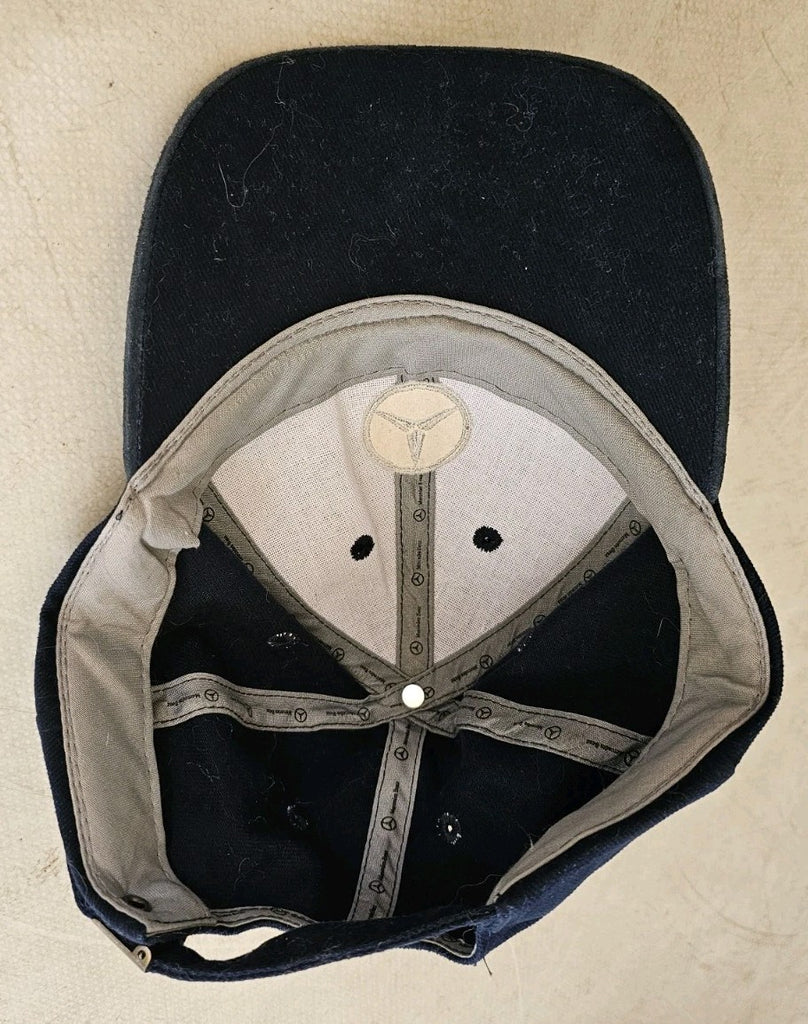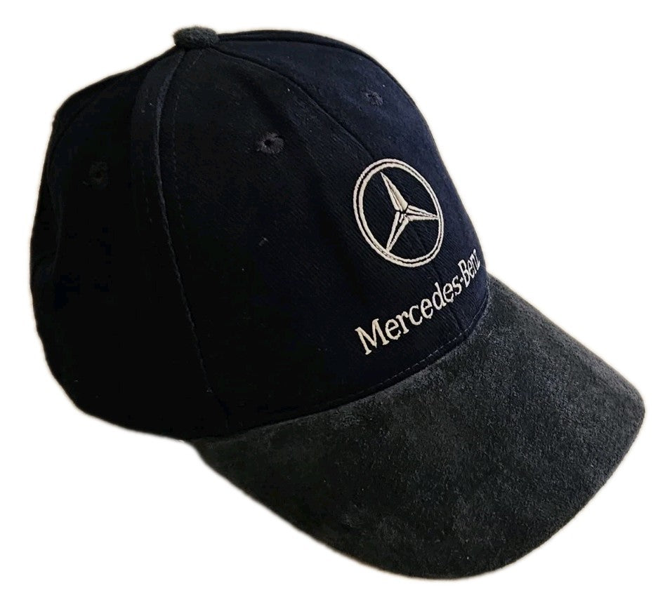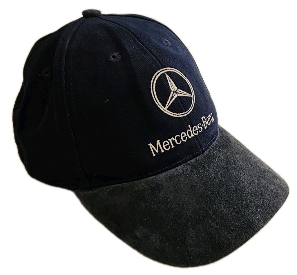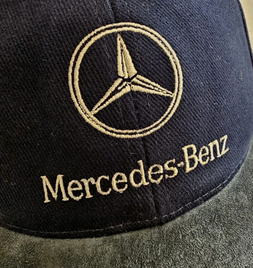 MERCEDES BENZ Baseball Cap Navy Blue Suede Peak Silver Logo Adjustable