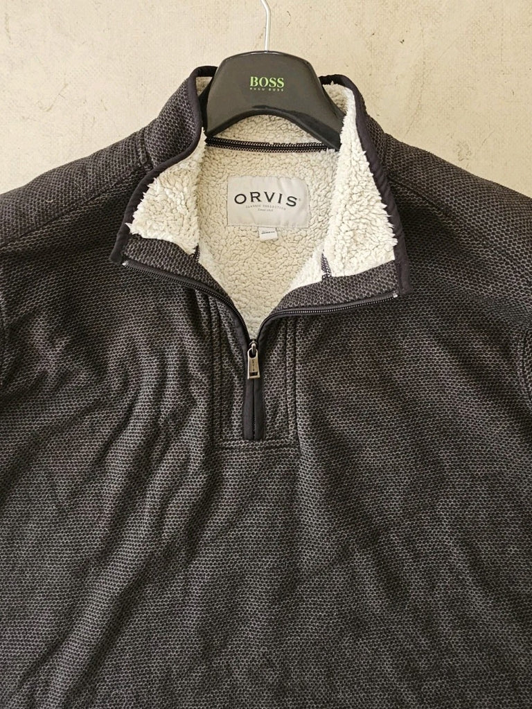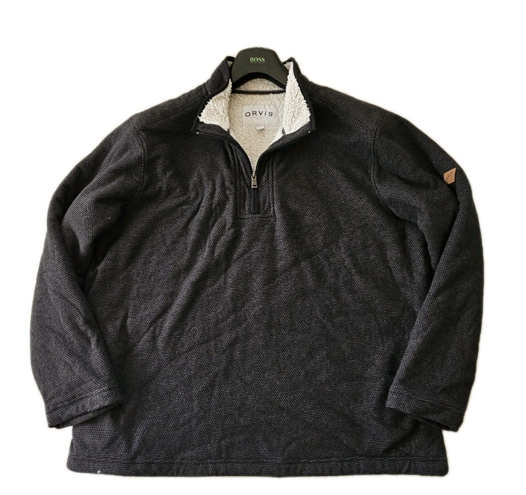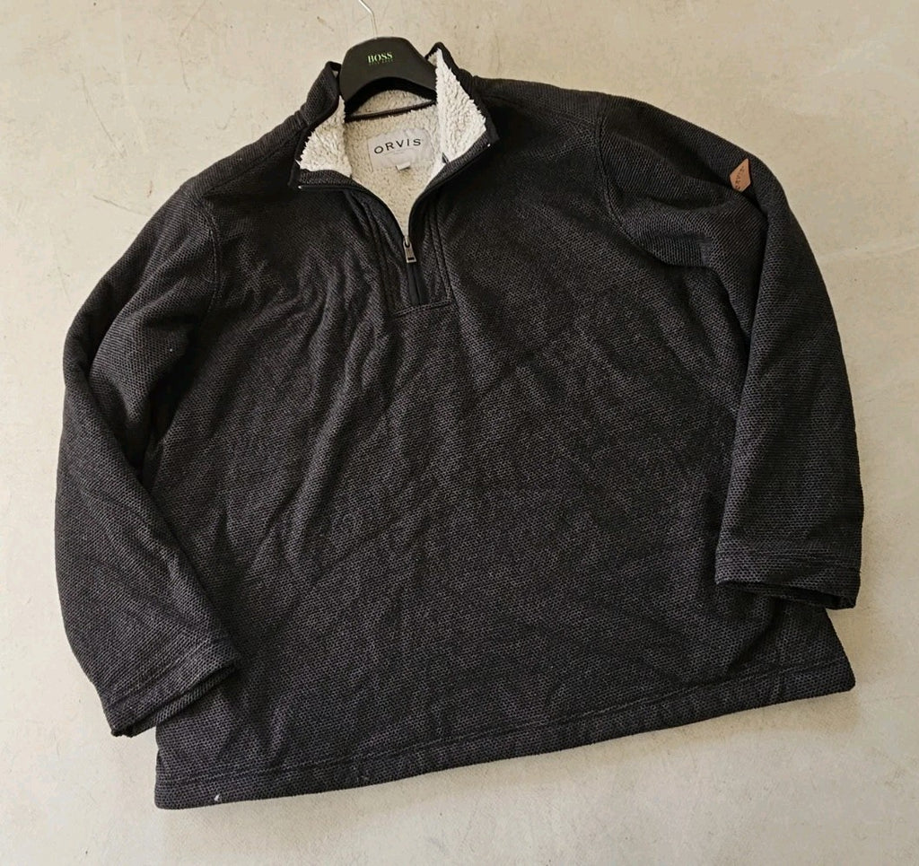 ORVIS Fleece Quarter Zip Mens XXL Mottled Grey Fleece Lined