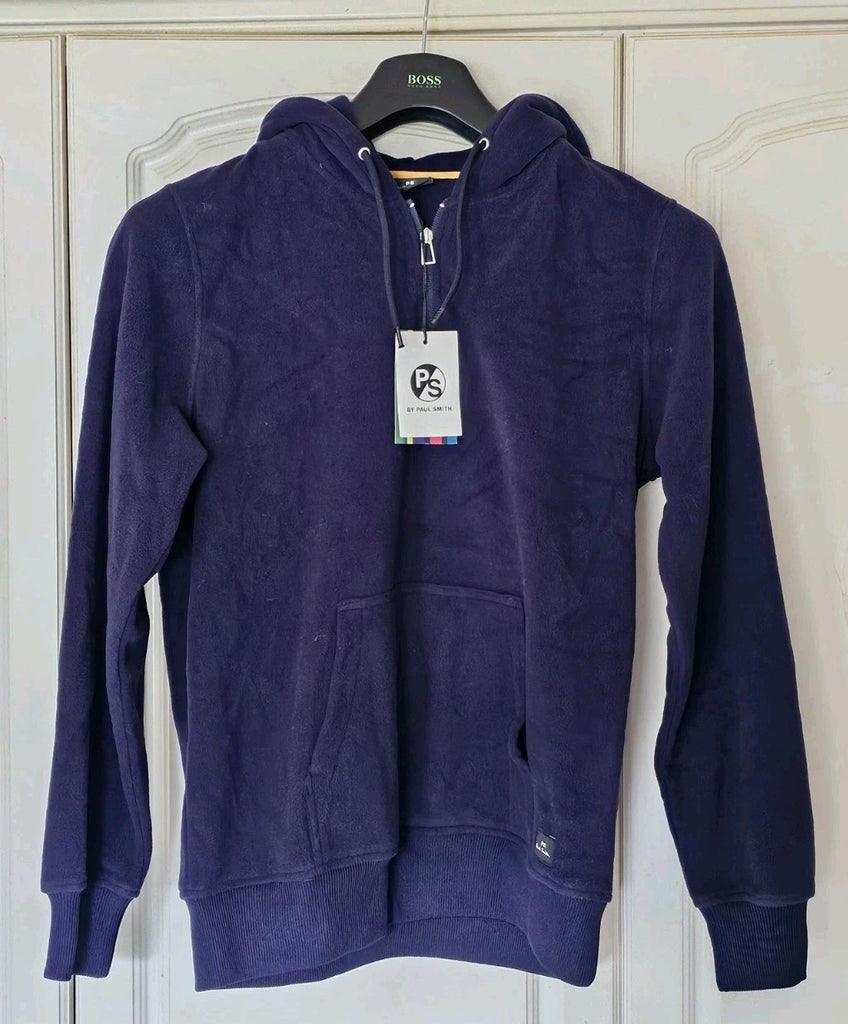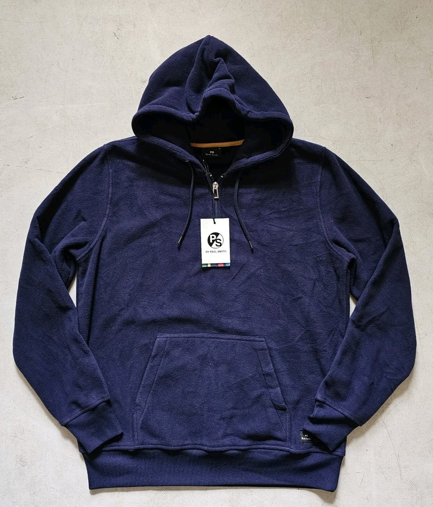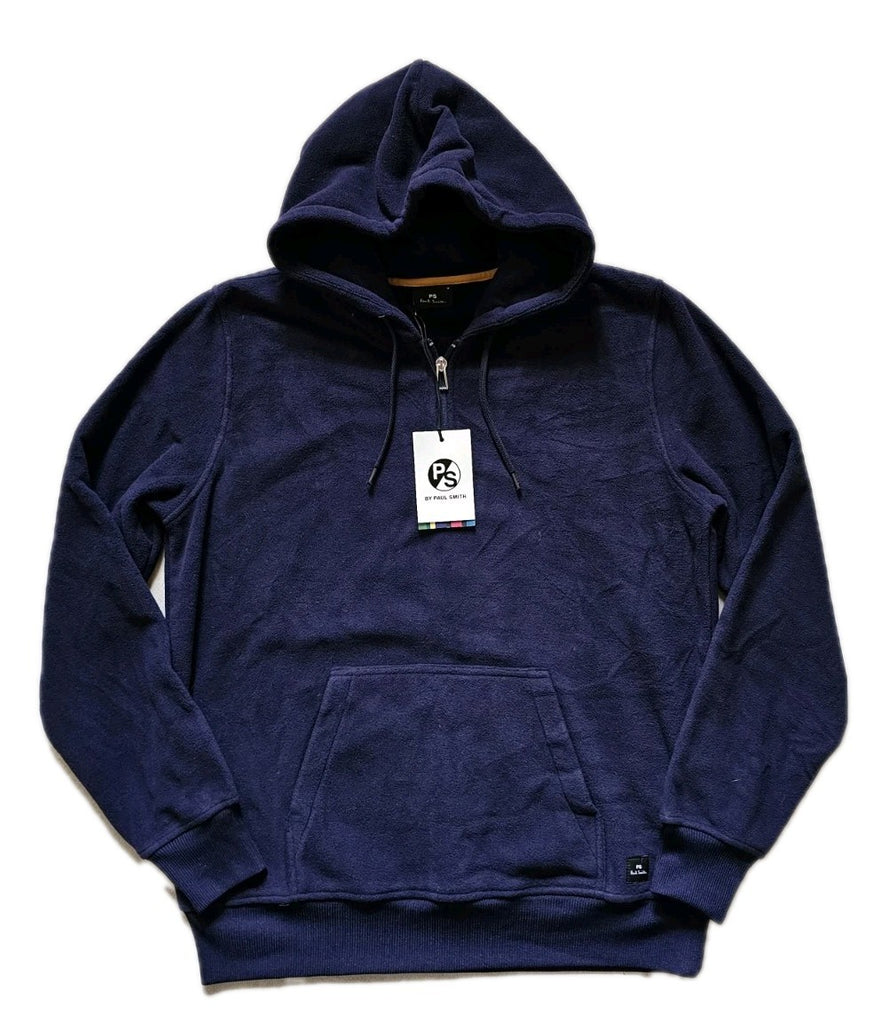 WE SELL THOUSANDS OF PS PIECES - MOSTLY LAST SEASONS THUS OUR LOWER PRICES. AS YOU'D  EXPECT, PAUL SMITH HAVE ADDED A FEW UNEXPECTED DESIGNER QUIRKS! IT COMES IN NAVY BLUE PURE COTTON FLEECE.