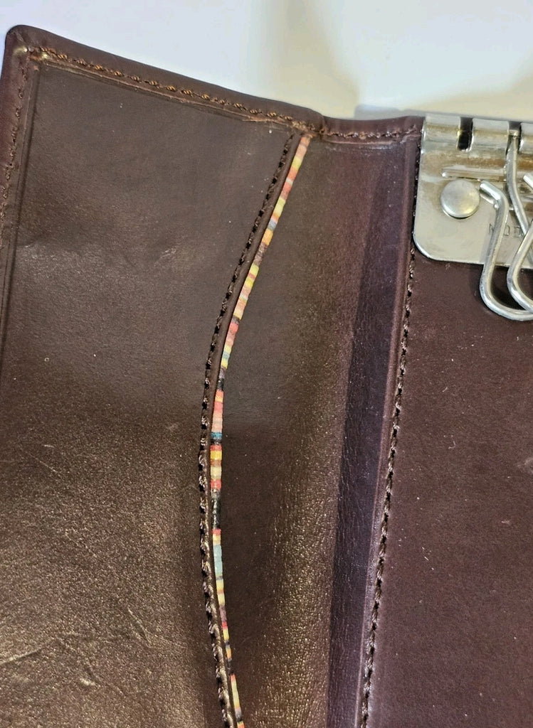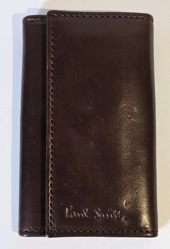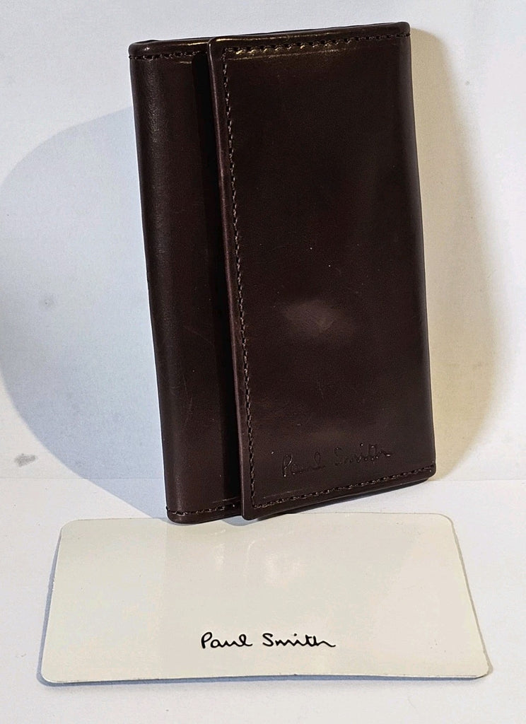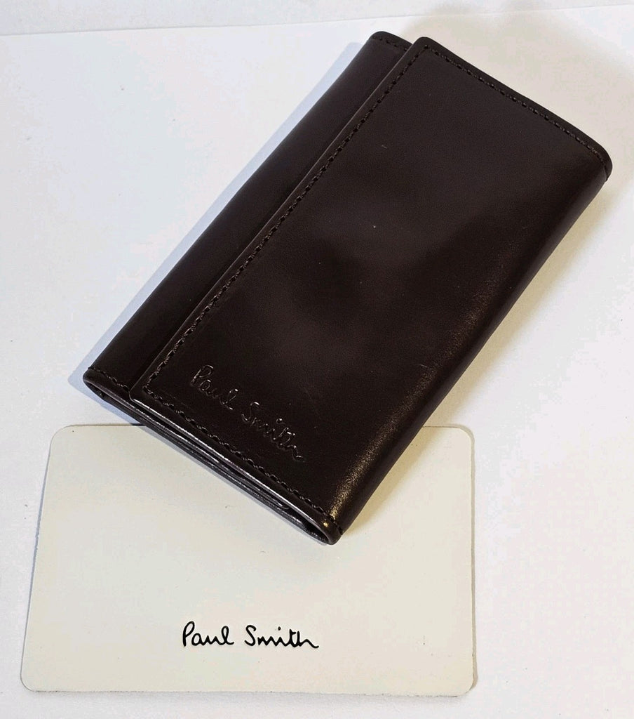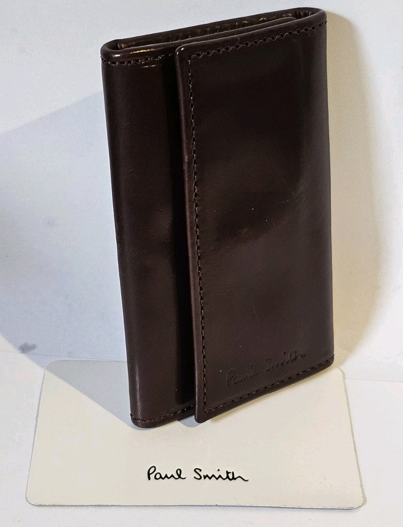 PAUL SMITH Key Holder Card Case Mocha Calf Leather Signature Stripe Trifold