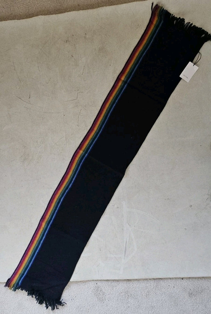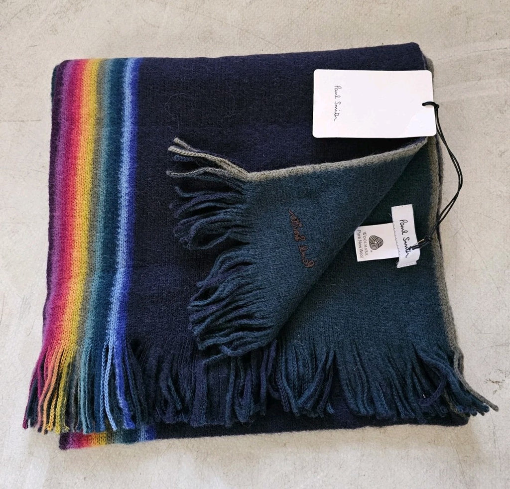 FANTASTIC OPPORTUNITY TO OWN A BRAND NEW PAUL SMITH GENTS VIRGIN WOOL SCARF AT LESS THAN HALF THE USUAL PRICE. PLEASE NOTE THIS IS THE HIGHER QUALITY GERMAN MODEL - IT HAS A MUCH THICKER WEAVE (SO STRONGER, SOFTER AND WARMER MATERIAL) AND HAS, OBVIOUSLY, BEEN HAND MADE IN GERMANY. THE RRP ON THIS SCARF IS £175 SO GRAB A BARGAIN! WE DON'T USE STOCK IMAGES SO THE SCARF IN THE PHOTOS IS THE ONE THAT YOU'LL RECIEVE.