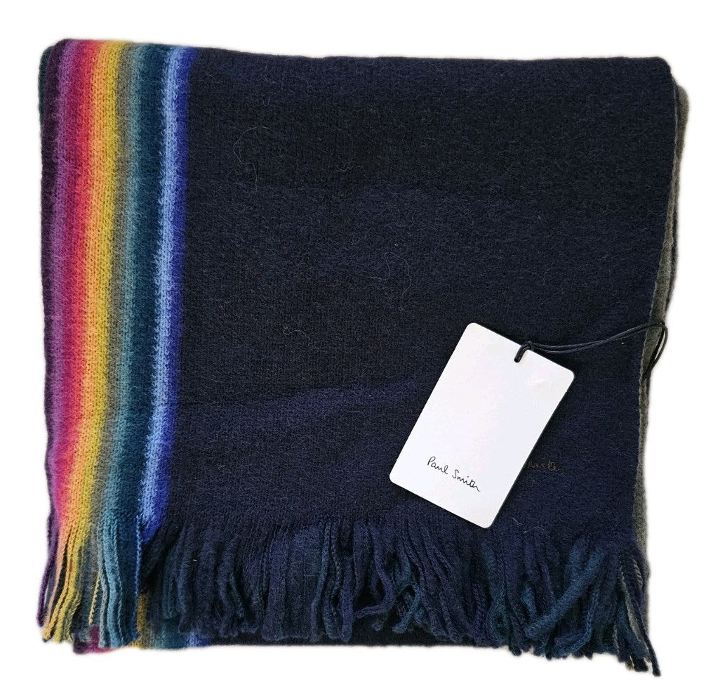 PAUL SMITH Scarf Mens Wool Artist Stripe Reversible Blue Green Germany Rrp £175