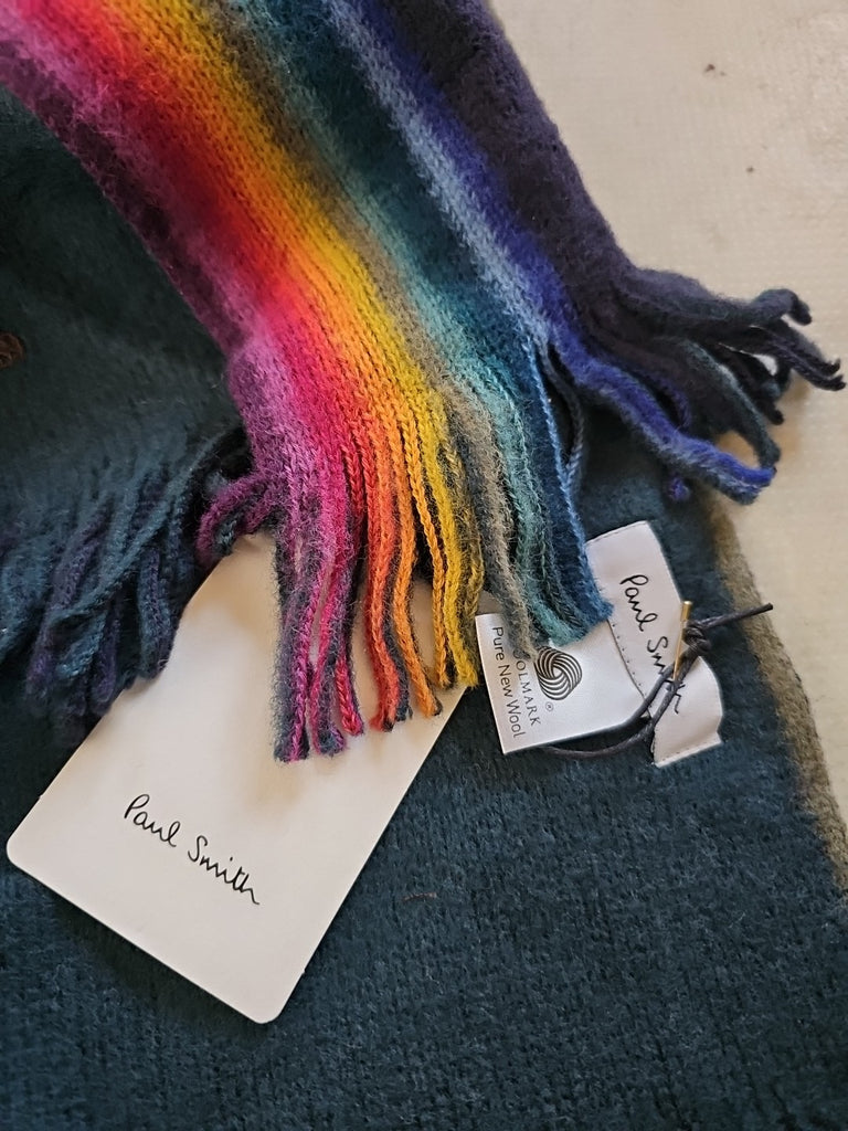 WE SELL THOUSANDS OF PAUL SMITH PIECES, MAINLY FROM LAST SEASON THUS THE LOW PRICES. FEEL FREE TO CHECK OUR OTHER LISTINGS AS THIS YEAR WE HAVE A VARIETY OF SCARF STYLES AND COLOURS AVAILABLE.