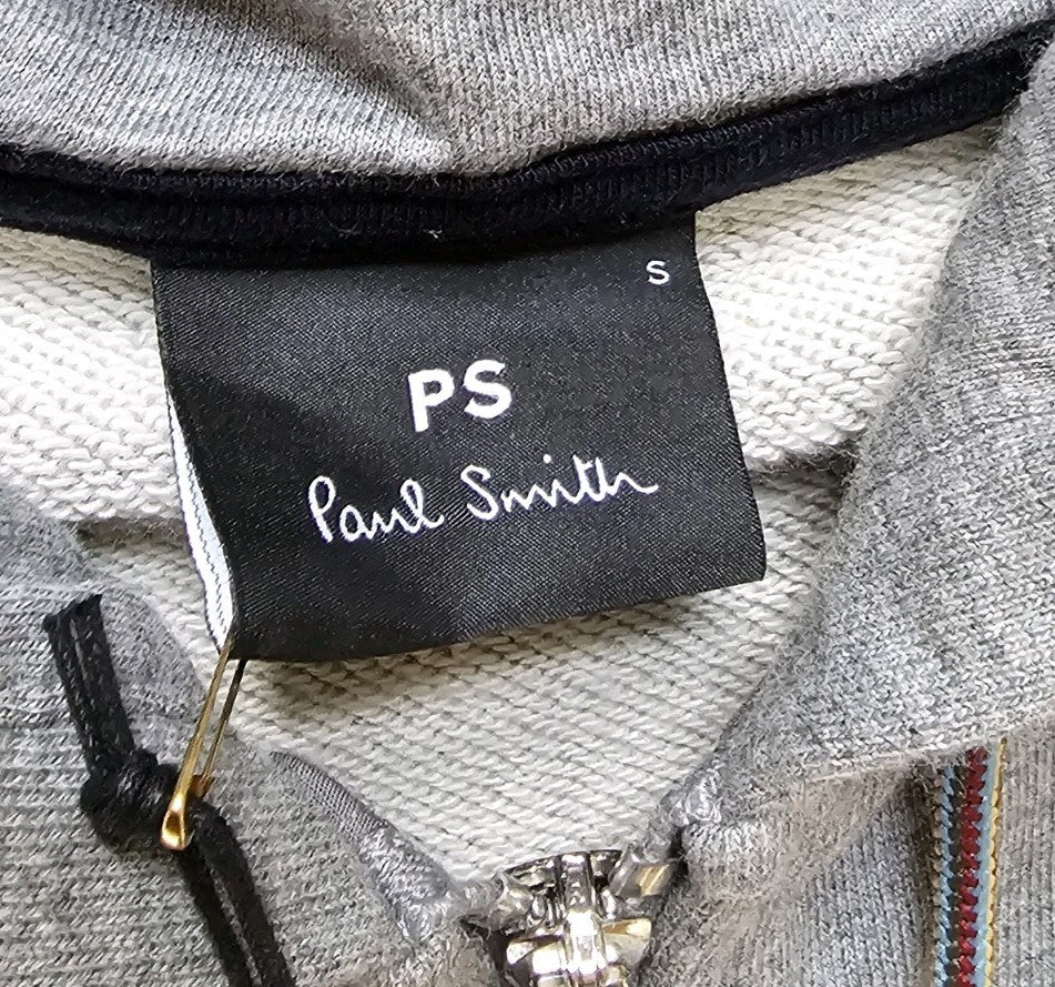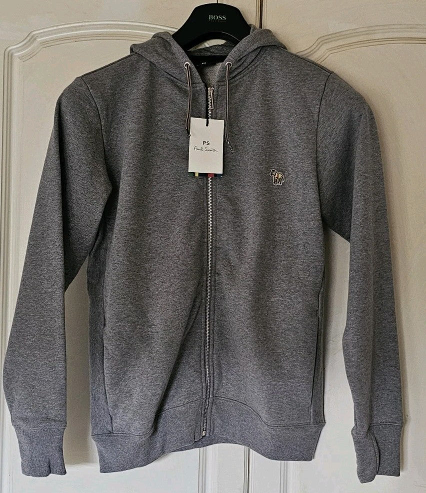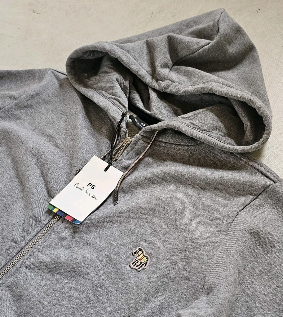 PAUL SMITH Zebra Hoodie Mens S Marl Grey Full Zip Current Season