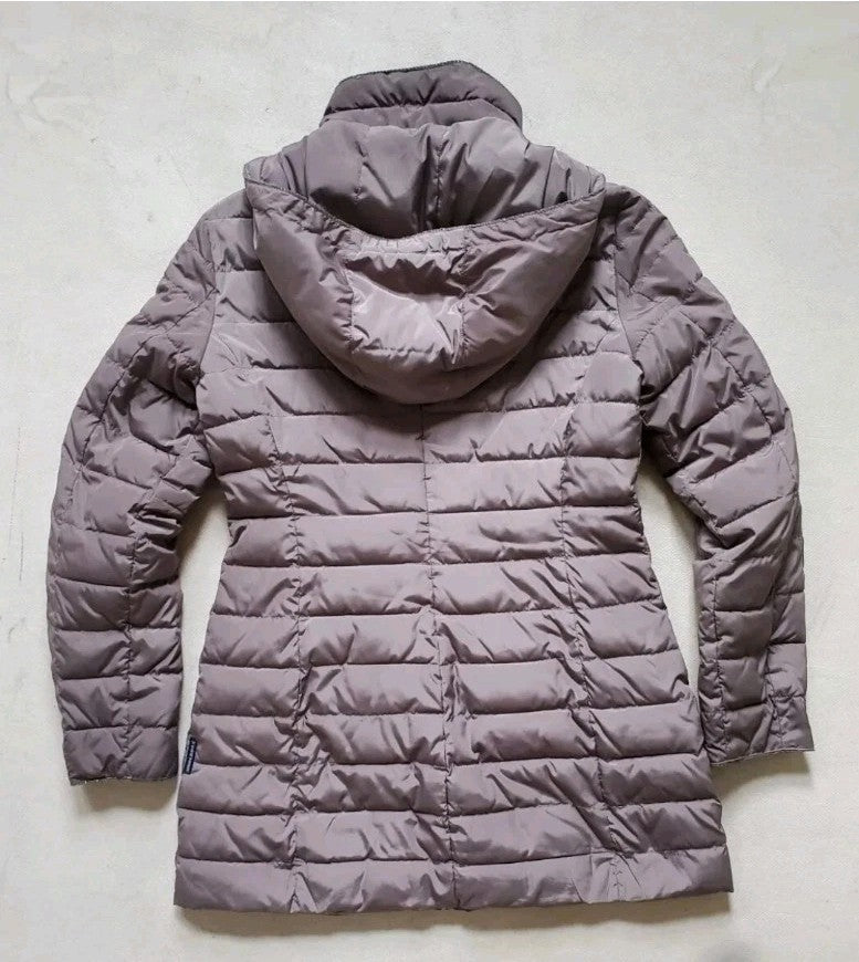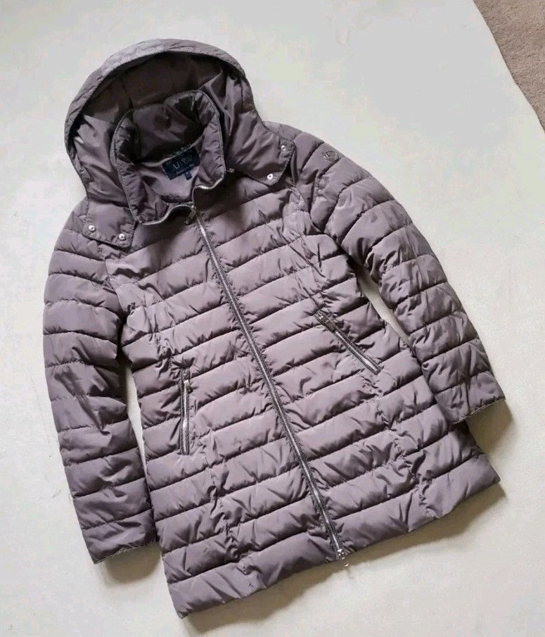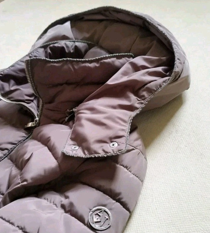 ARMANI JEANS Puffer Jacket Coat Womens UK 12 IT 44 Removable Hood Quilted Taupe