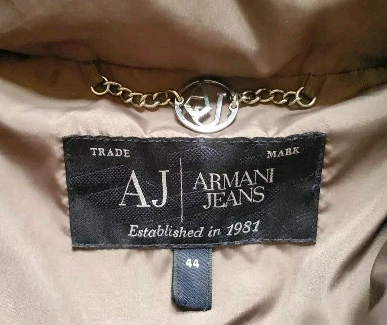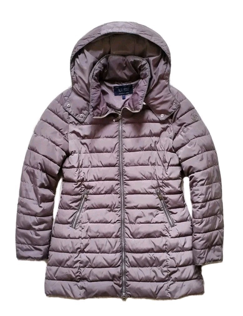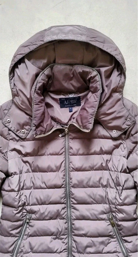 FANTASTIC OPPORTUNITY TO OWN AN ARMANI JEANS WOMENS PUFFER JACKET WITH A REMOVABLE HOOD AND A SUBTLE, BUT FABULOUS BLING TRIM! IF YOU'RE FAMILIAR WITH ARMANI THEN YOU'LL ALREADY KNOW THAT THEY MAKE AMONG THE BEST QUALITY OUTDOOR GEAR AVAILABLE ON THE MARKET. THE RRP ON THIS ITEM IS £160 SO GRAB A BARGAIN!