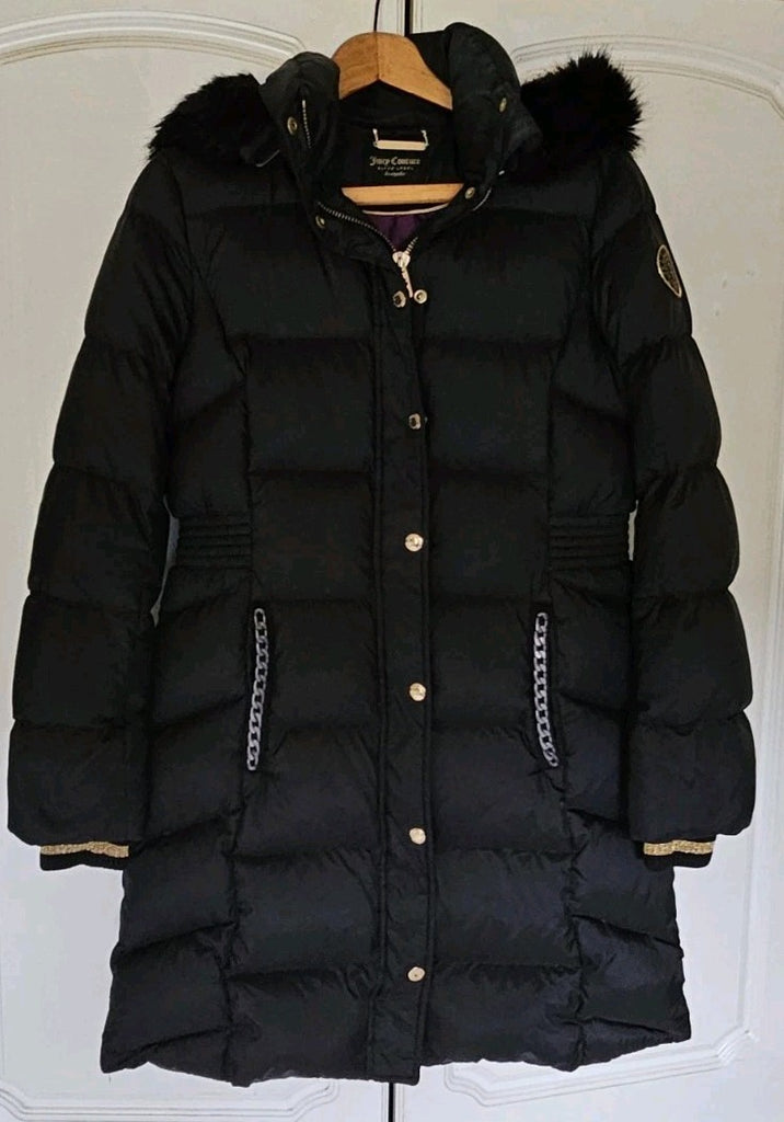 FANTASTIC OPPORTUNITY TO OWN A JUICY COUTURE WOMENS PUFFER JACKET WITH A REMOVABLE HOOD AND A FAUX FUR TRIM! THE RRP ON THIS ITEM IS £230 SO GRAB A BARGAIN!