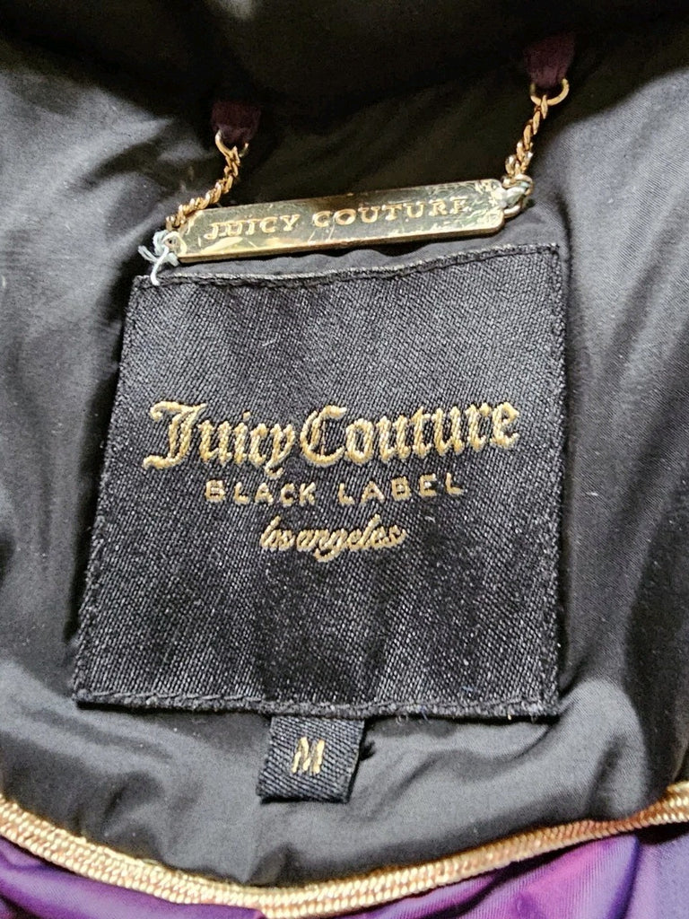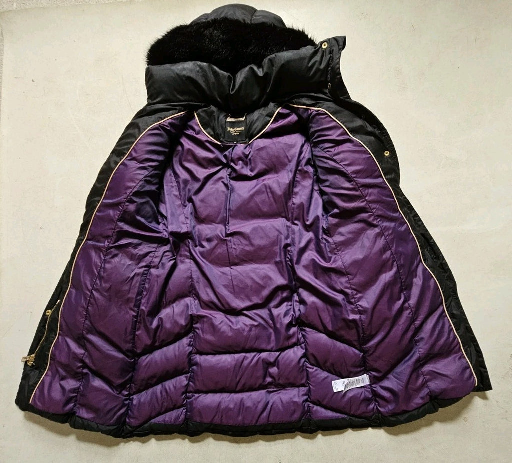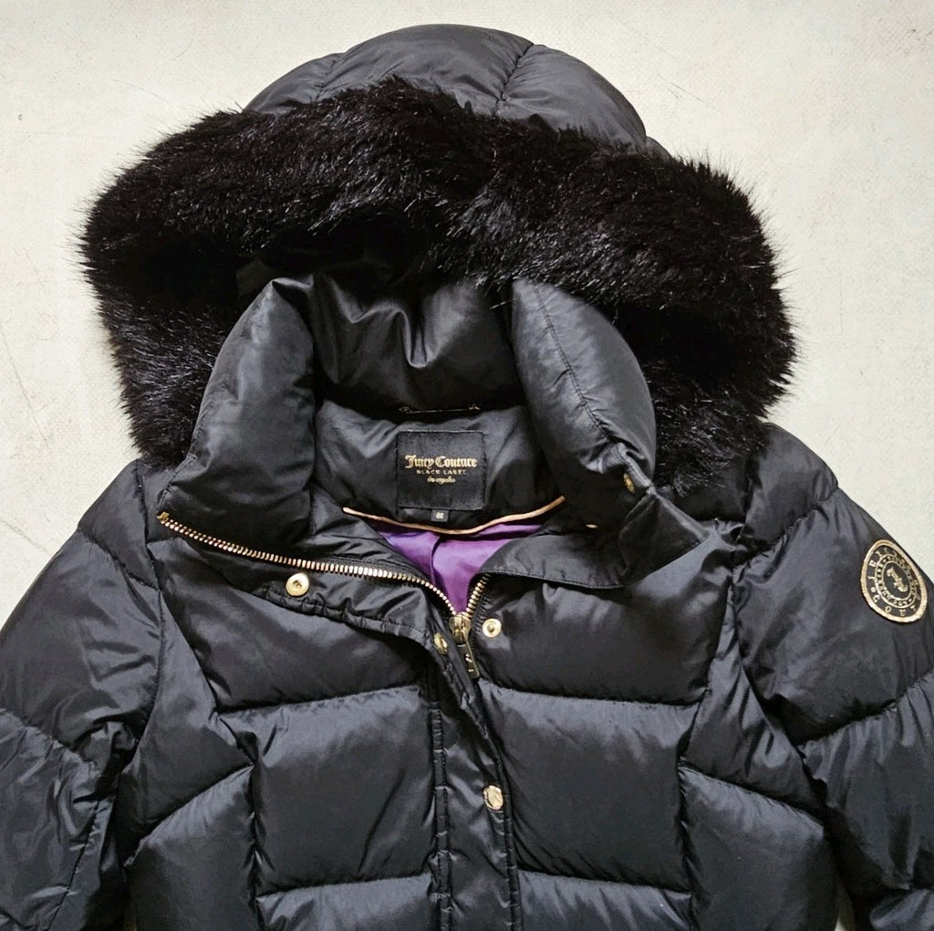Juicy Couture Puffer Jacket Coat Womens M Black Down Filled Removable Hood