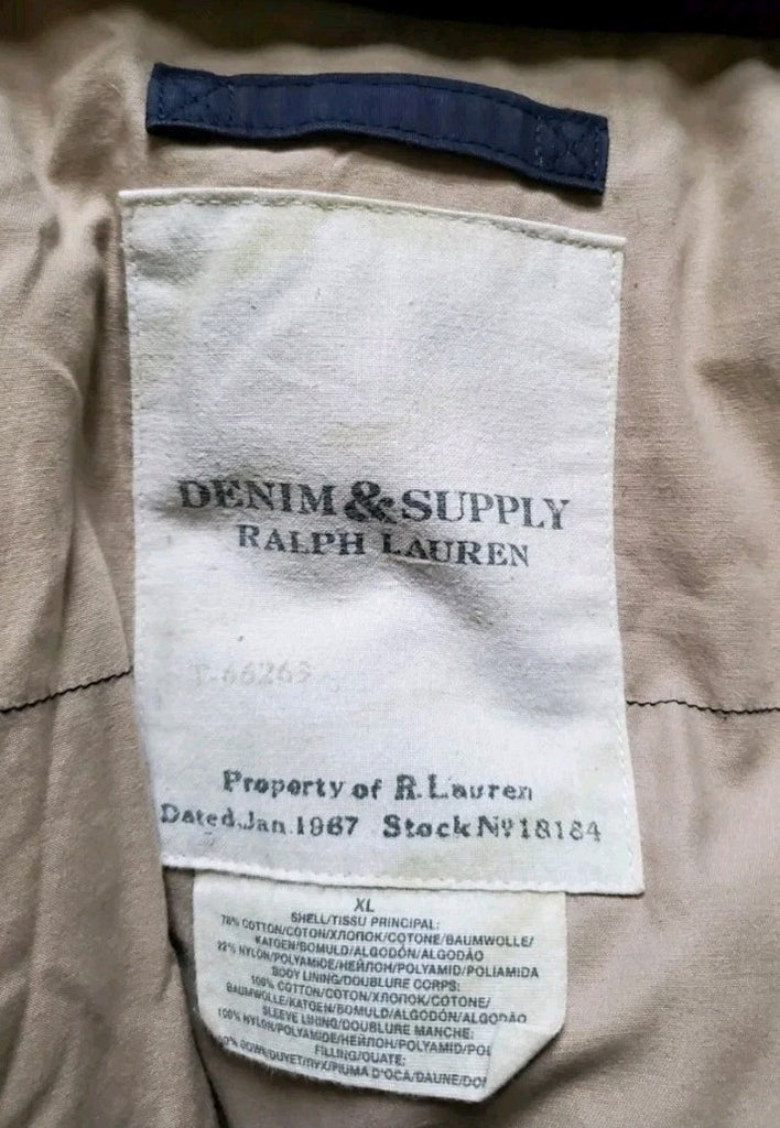 GREAT OPPORTUNITY TO OWN AN AUTHENTIC WOMENS RALPH LAUREN DENIM & SUPPLY PARKA IN DUCK DOWN FILLED BLUE BLACK WITH A FAUX FUR TRIMMED HOOD. I WON'T GO INTO MASSIVE DETAILS ABOUT THE QUALITY OF THIS PIECE...IF YOU'RE READING THIS THEN YOU ALREADY KNOW EXACTLY WHAT YOU'RE LOOKING AT. IF NOT, ITS DEFINITELY WORTH YOUR WHILE DOING A SEARCH ONLINE - THERE'S LOADS OF INFO AVAILABLE - THESE ARE THE BEST JACKETS RL HAVE EVER PRODUCED.