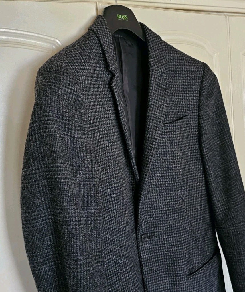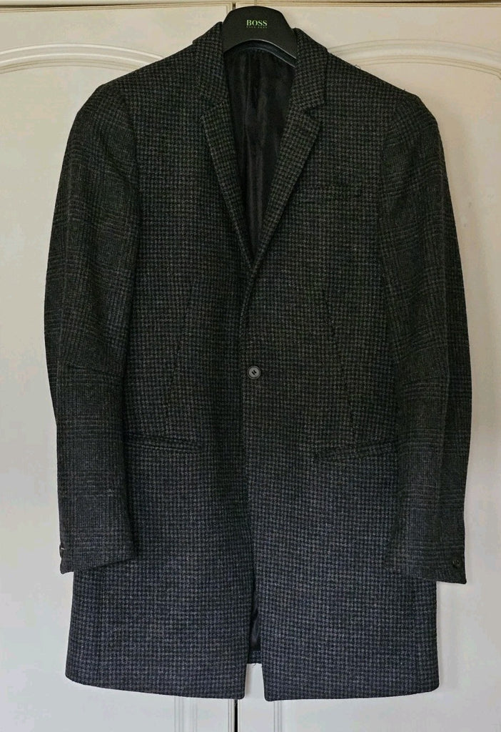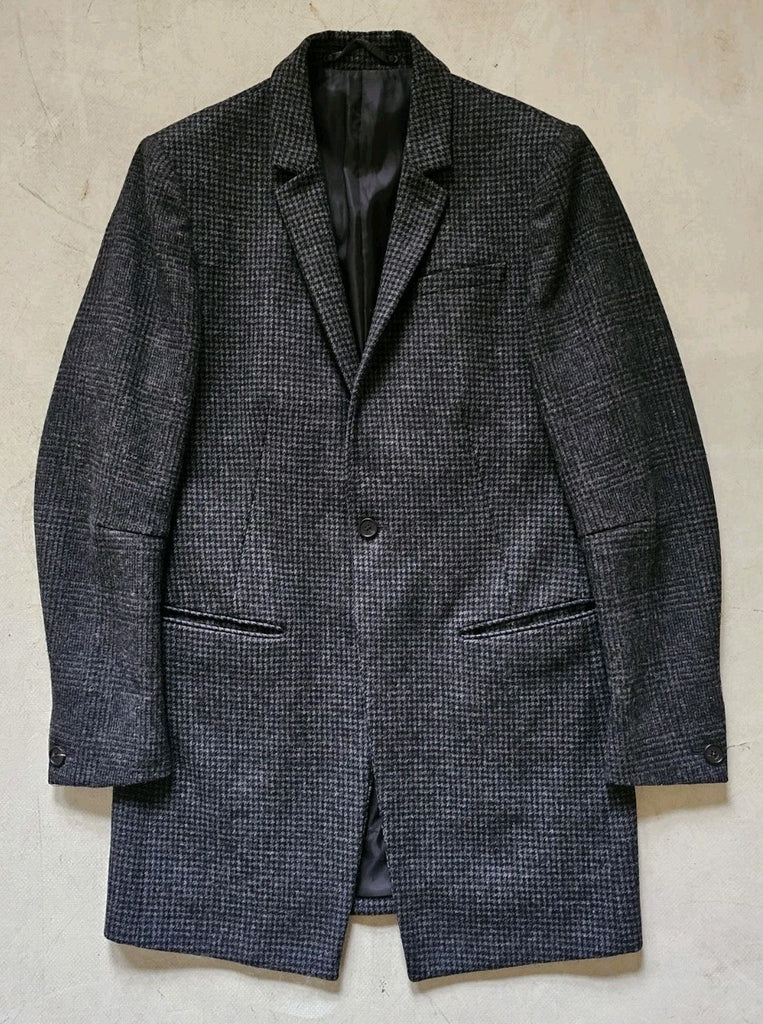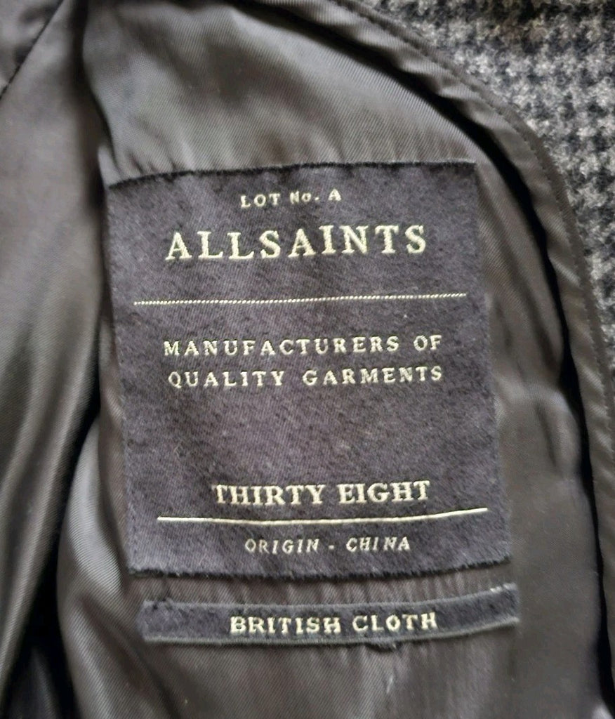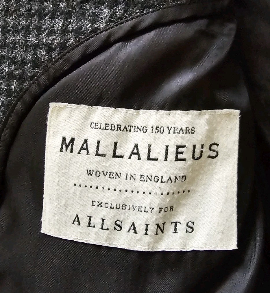ALL SAINTS District coat Overcoat British Mallalieus Tweed Mens 38 Grey Check