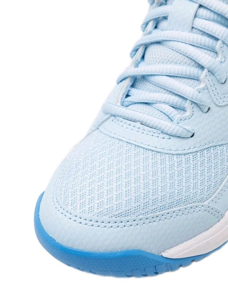 This shoe's upper is constructed with synthetic leather overlays to improve support. They help keep feet locked-in when switching directions and chasing down challenging shots.