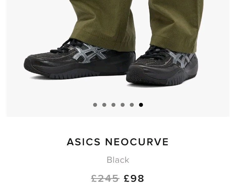 Great opportunity to own a pair of Asics Neocurve trainers - ner in the hox with all paperwork included. This is the black/pure silver model. Rrp is £125 so grab a bargain and save yourself roughly 70% off the usual price - they're worth a LOT more than I'm charging!